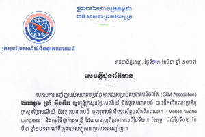 សេចក្ដីជូនព័ត៌មាន ស្ដីពីការចូលរួមមហាសន្និបាតទូរស័ព្ទចល័តពិភពលោកឆ្នាំ២០១៧ (GSMA Mobile World Congress 2017) និងកម្មវិធីថ្នាក់រដ្ឋមន្ត្រី នៅប្រទេសអេស្ប៉ាញ