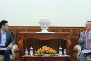រាជធានីភ្នំពេញ៖ នារសៀលថ្ងៃទី១៦ ខែមីនា ឆ្នាំ២០១៧ វេលាម៉ោង ៣:៣០នាទី ឯកឧត្ដម ត្រាំ អុីវតឹក រដ្ឋមន្ត្រីក្រសួងប្រៃសណីយ៍ និងទូរគមនាគមន៍ បានអនុញ្ញាតឲ្យលោក Ma Yanfeng, Vice President of Huawei Marin ចូលជួបសម្ដែងការគួរសម និងពិភាក្សាការងារ នៅទីស្ដីការក្រសួងប្រៃសណីយ៍ និងទូរគមនាគមន៍។