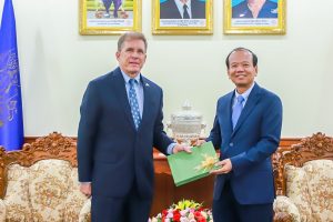រាជធានីភ្នំពេញ៖ នៅរសៀល ថ្ងៃទី១១ ខែឧសភា ឆ្នាំ២០២០ នៅទីស្តីការក្រសួង ឯកឧត្តម ជា វ៉ាន់ដេត រដ្ឋមន្ត្រីក្រសួងប្រៃសណីយ៍និងទូរគមនាគមន៍ បានទទួលជួបសម្តែងការគួរសមនិងពិភាក្សាការងារ ជាមួយ ឯកឧត្តម W. Patrick Murphy ឯកអគ្គរដ្ឋទូតសហរដ្ឋអាមេរិក ប្រចាំនៅព្រះរាជាណាចក្រកម្ពុជា។