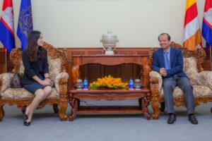 រាជធានីភ្នំពេញ៖ នៅព្រឹកថ្ងៃទី១៥ ខែកក្កដា ឆ្នាំ២០២០ ឯកឧត្តមរដ្ឋមន្រ្តី ជា វ៉ាន់ដេត បានអនុញ្ញាតឲ្យលោកស្រី Ling Yan អ្នកចាត់ការទូទៅនៃក្រុមហ៊ុន China Telecom Cambodia Co., Ltd. ជួបសម្តែងការគួរសម និងពិភាក្សាការងារនៅទីស្តីការក្រសួង។