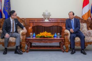 រាជធានីភ្នំពេញ៖ នៅរសៀលថ្ងៃទី១៤ ខែកក្កដា ឆ្នាំ២០២០ នៅទីស្តីការក្រសួង ឯកឧត្តម ជា វ៉ាន់ដេត រដ្ឋមន្ត្រីក្រសួងប្រៃសណីយ៍និងទូរគមនាគមន៍ បានអនុញ្ញាតឱ្យលោក Miyao Masahiro ប្រធានតំណាងអង្គការពាណិជ្ជកម្មក្រៅប្រទេសជប៉ុនប្រចាំកម្ពុជា ជួបសម្តែងការគួរសម និងពិភាក្សាការងារ។ កិច្ចប្រជុំនេះ ត្រូវបានរៀបចំឡើងក្នុងគោលបំណងពិភាក្សាអំពីការសហការរវាងស្ថាប័នទាំងពីរក្នុងការលើកកម្ពស់ទំនាក់ទំនងធុរកិច្ច និងការវិនិយោគលើកវិស័យបច្ចេកវិទ្យាព័ត៌មាននិងគមនាគមន៍ របស់ធុរជនប្រទេសទាំងពីរ។