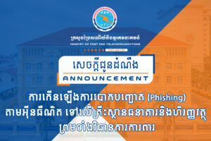 សេចក្តីជូនដំណឹង ស្តីពី ការកើនឡើងការបោកបញ្ឆោត (Phishing) តាមអុីនធឺណិត ទៅលើគ្រឹះស្ថានធនាគារនិងហិរញ្ញវត្ថុ ព្រមទាំងវិធានការការពារ