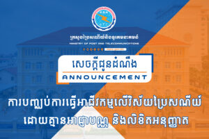 សេចក្តីជូនដំណឹង ស្តីពី ការបញ្ឈប់ការធ្វើអាជីវកម្មលើវិស័យប្រៃសណីយ៍ ដោយគ្មានអាជ្ញាបណ្ណ និងលិខិតអនុញ្ញាត