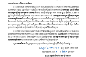 សាររំលែកទុក្ខ របស់ឯកឧត្តមរដ្ឋមន្ត្រី ជា វ៉ាន់ដេត ព្រមទាំងថ្នាក់ដឹកនាំ និងមន្ត្រីរាជការ នៃក្រសួងប្រៃសណីយ៍និងទូរគមនាគមន៍ ផ្ញើជូន លោកជំទាវ ឈរ ណារី ត្រាំអុីវតឹក ព្រមទាំងក្រុមគ្រួសារ