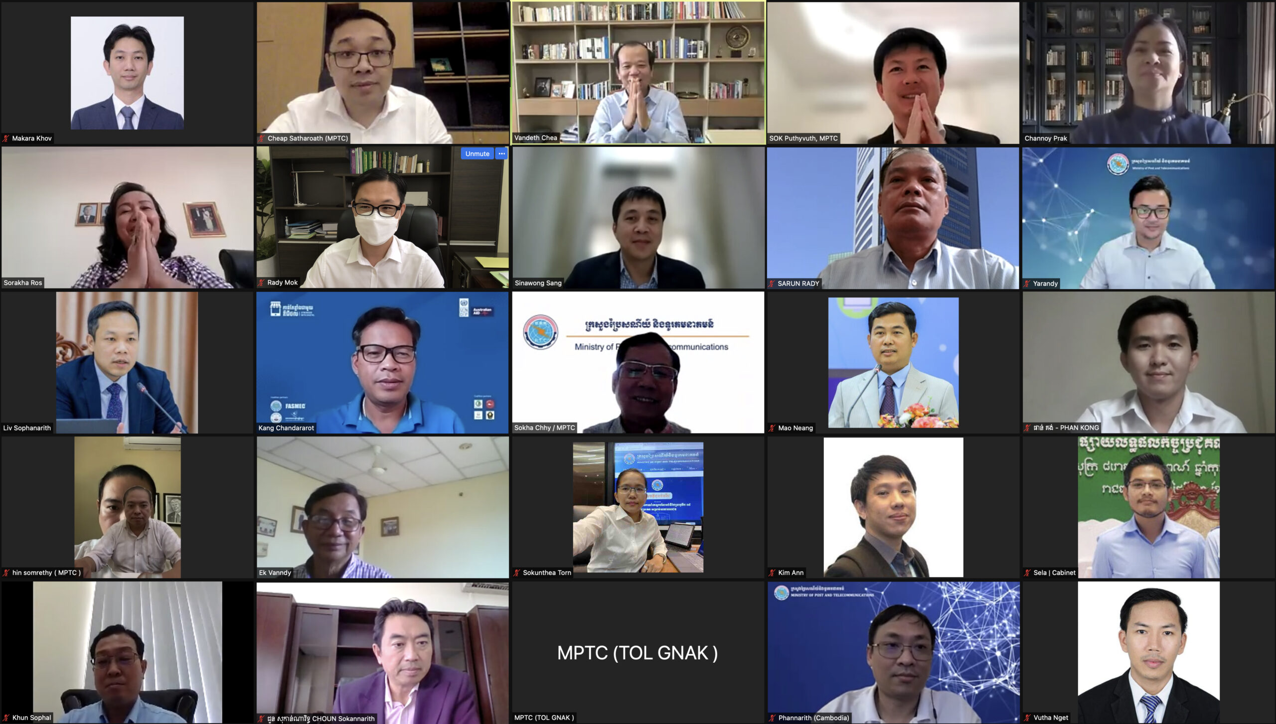 រាជធានីភ្នំពេញ៖ នាព្រឹកថ្ងៃទី២១ ខែកញ្ញា ឆ្នាំ២០២១ ឯកឧត្ដម ជា វ៉ាន់ដេត រដ្ឋមន្ត្រីក្រសួងប្រៃសណីយ៍និងទូរគមនាគមន៍ បានអញ្ជើញជាអធិបតីដឹកនាំកិច្ចប្រជុំលើសេចក្ដីព្រាងច្បាប់ស្ដីពីសន្ដិសុខសាយប័រ តាមរយៈប្រព័ន្ធសន្និសីទវីដេអូ Zoom ដោយមានការអញ្ជើញចូលរួមពីថ្នាក់ដឹកនាំក្រសួង អគ្គនាយក ប្រធានអង្គភាពពាក់ព័ន្ធ និងមន្ត្រីជំនាញនៃក្រសួងប្រៃសណីយ៍និងទូរគមនាគមន៍។