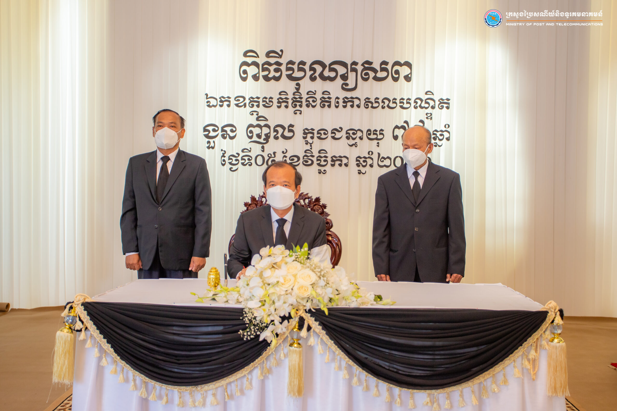 ថ្នាក់ដឹកនាំក្រសួង និងមន្ត្រីរាជការនៃក្រសួងប្រៃសណីយ៍និងទូរគមនាគមន៍ សូមឧទ្ទិសបួងសួងដល់ដួងវិញ្ញាណក្ខន្ធសពរបស់ឯកឧត្តមកិត្តិនីតិកោសលបណ្ឌិត បានទៅសោយសុខក្នុងឋានសុគតិភពកុំបីឃ្លៀងឃ្លាតឡើយ។