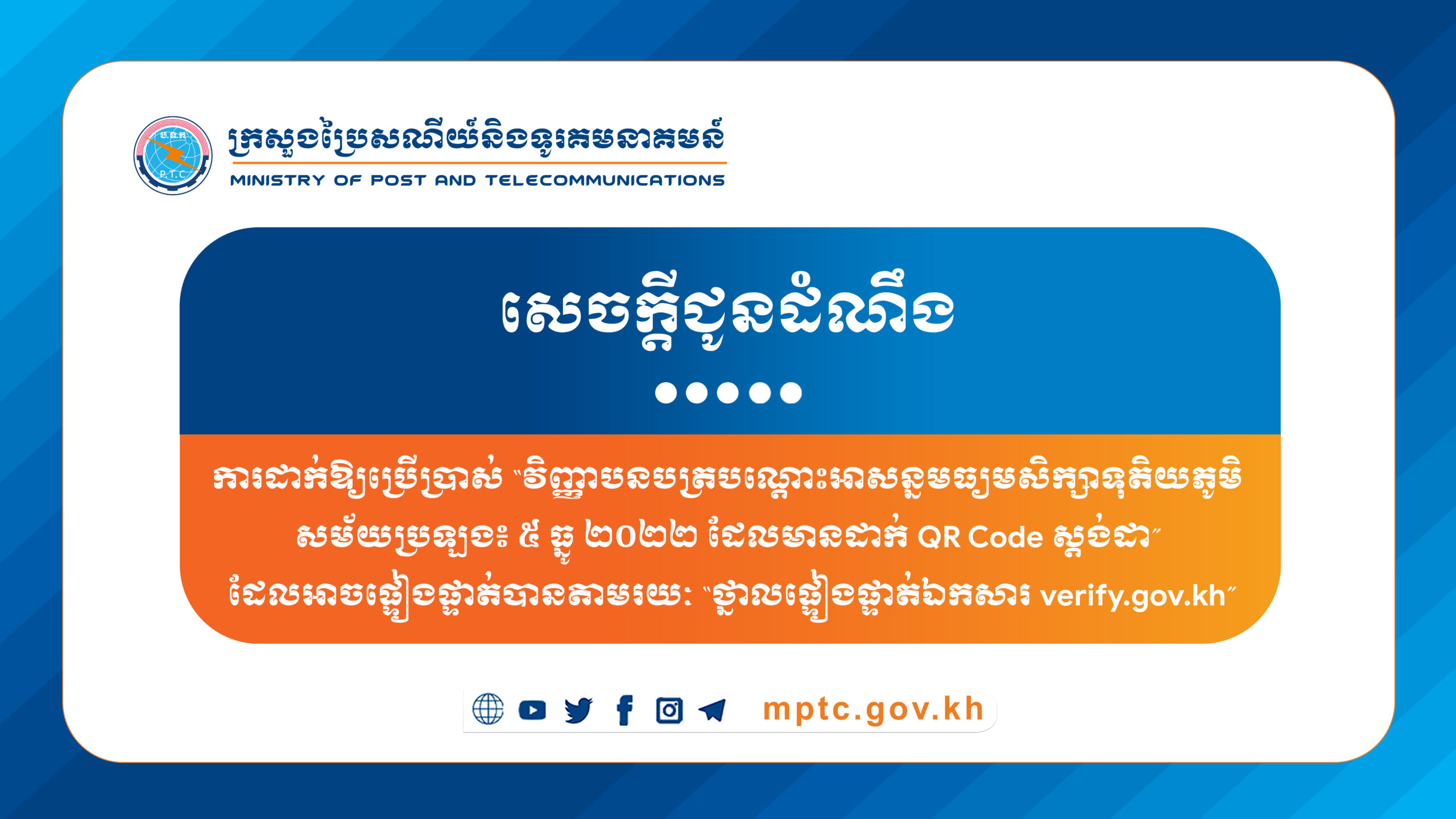 © 2026 រក្សាសិទ្ធិគ្រប់យ៉ាងដោយក្រសួងប្រៃសណីយ៍និងទូរគមនាគមន៍