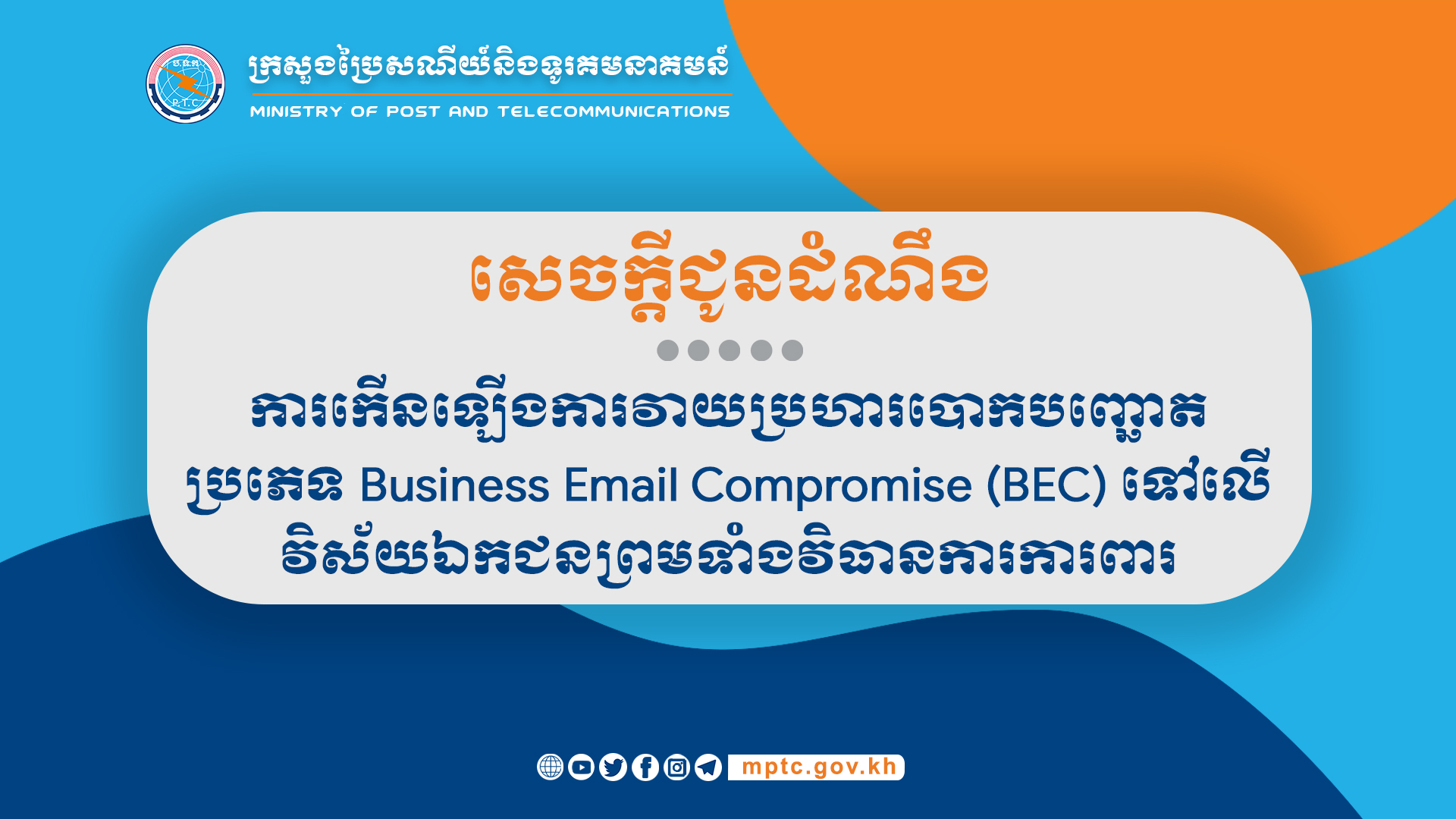 សេចក្តីជូនដំណឹង ស្ដីពី ការកើនឡើងការវាយប្រហារបោកបញ្ជោតប្រភេទ Business Email Compromise (BEC) ទៅលើវិស័យឯកជនព្រមទាំងវិធានការការពារ