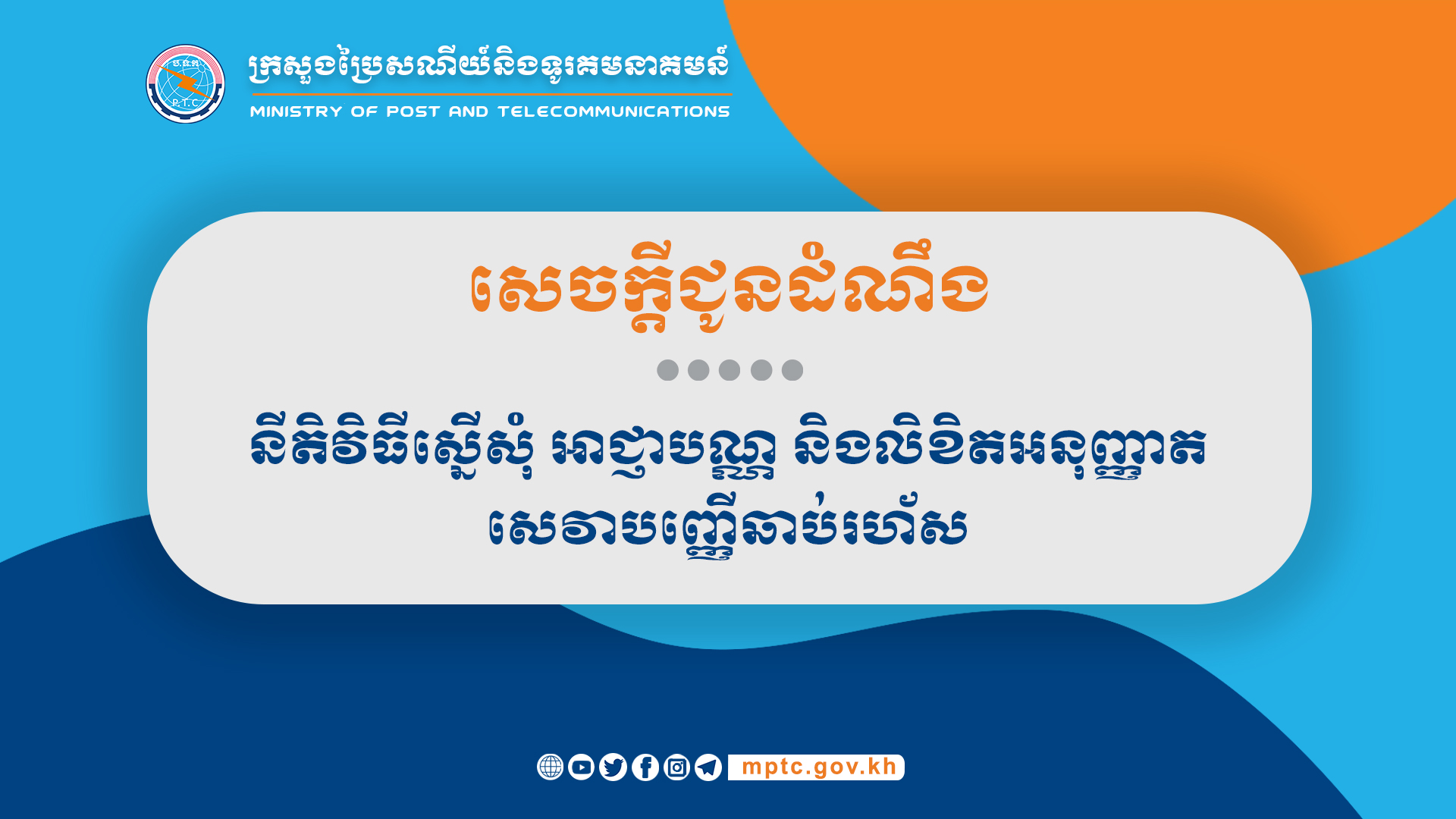 សេចក្តីជូនដំណឹង ស្តីពី នីតិវិធីស្នើសុំ អាជ្ញាបណ្ណ និងលិខិតអនុញ្ញាតសេវាបញ្ញើឆាប់រហ័ស