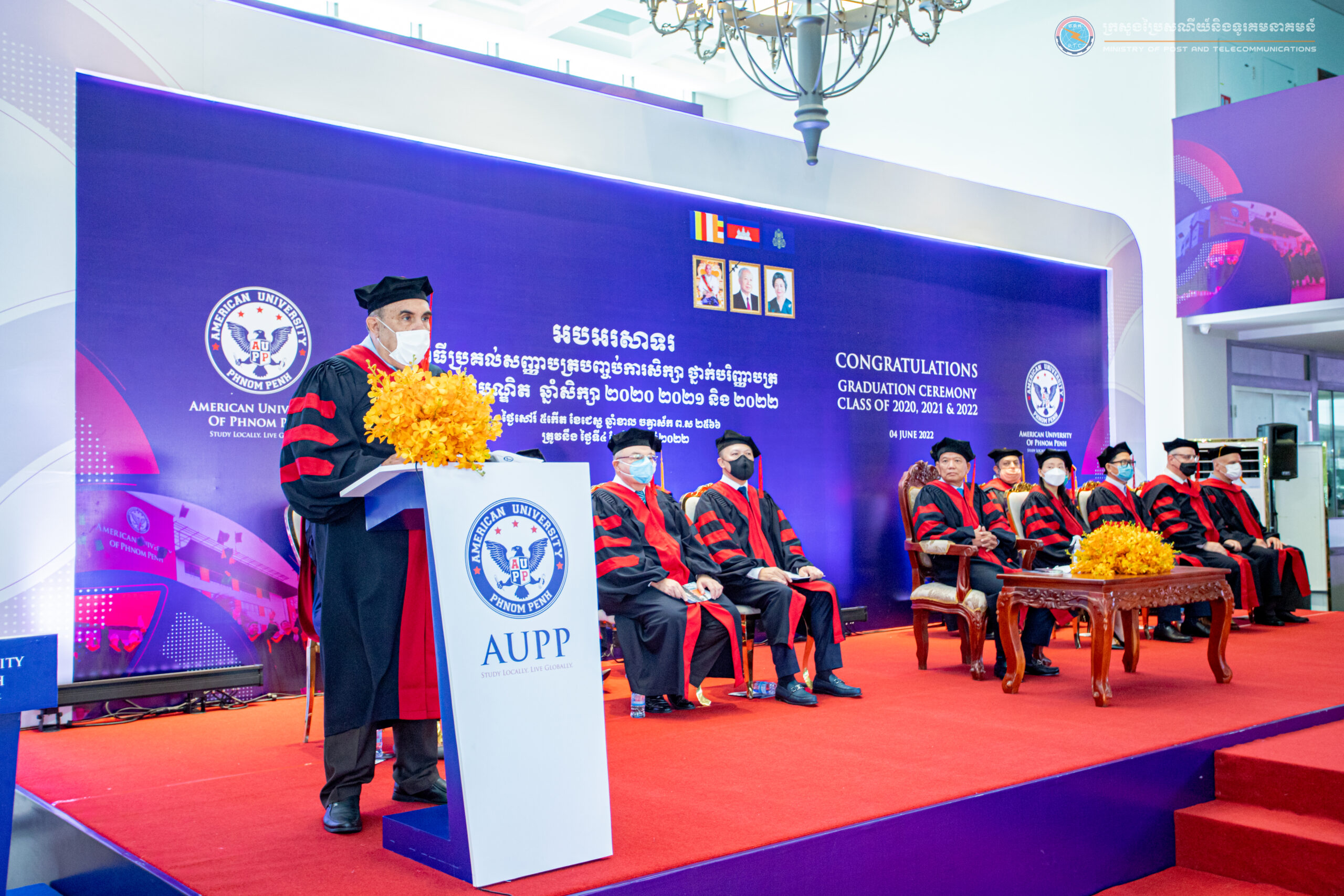 រាជធានីភ្នំពេញ៖ នៅព្រឹកថ្ងៃទី៤ ខែមិថុនា ឆ្នាំ២០២២ ឯកឧត្តម ជា វ៉ាន់ដេត រដ្ឋមន្ត្រីក្រសួងប្រៃសណីយ៍និងទូរគមនាគមន៍ បានអញ្ជើញជាអធិបតីប្រគល់សញ្ញាបត្រជូនដល់និស្សិតសាកលវិទ្យាល័យអាមេរិកាំងភ្នំពេញចំនួន១៣០នាក់ ដែលបានបញ្ចប់ការសិក្សាដោយជោគជ័យ។