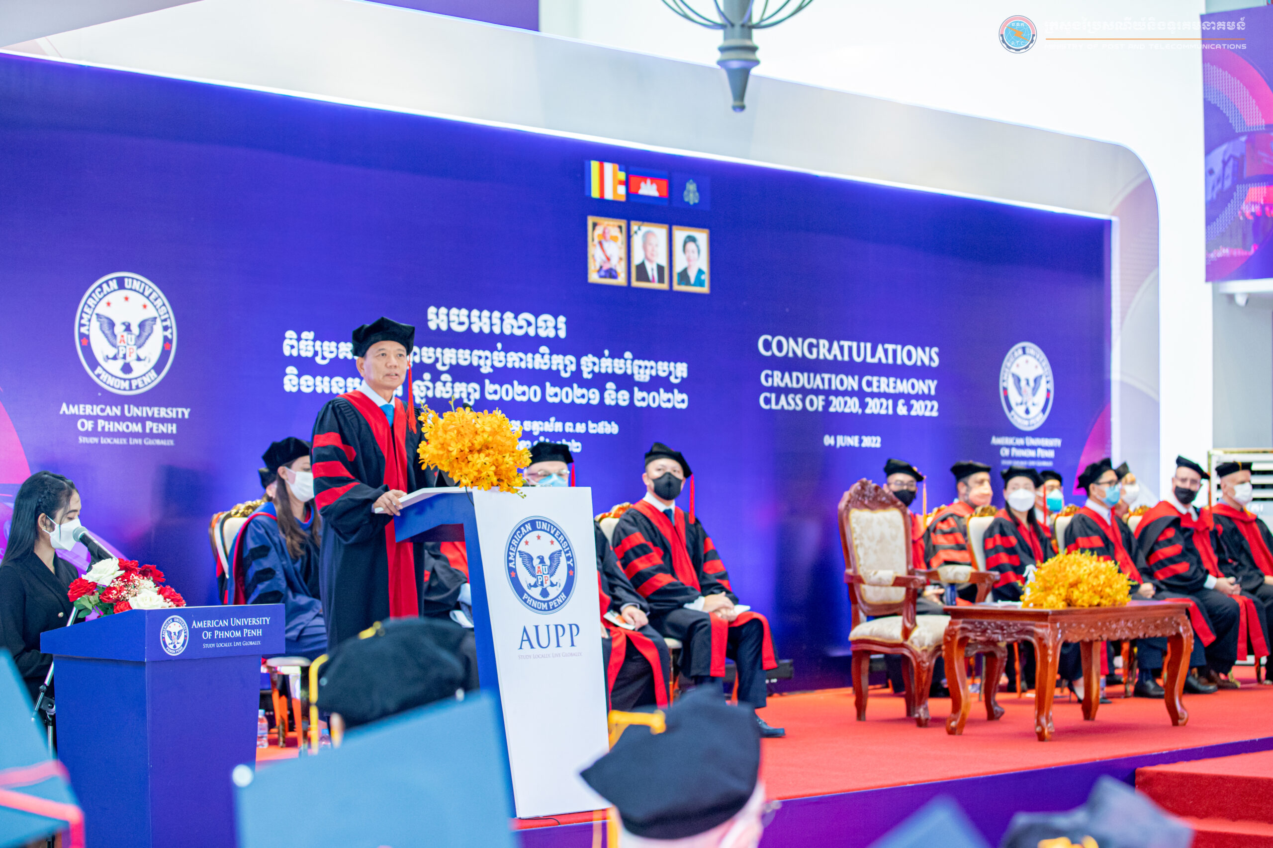 ឯកឧត្តមរដ្ឋមន្ត្រី បានផ្តាំផ្ញើនិស្សិតជ័យលាភីទាំងអស់ឱ្យបន្តអភិវឌ្ឍសមត្ថភាព ដើម្បីសម្រេចគោលដៅជីវិត ហើយពេលជួបឧបសគ្គឬបរាជ័យមួយគ្រា សូមកុំរាថយនិងកុំអស់សង្ឃឹម ព្រោះពេលខ្លះបរាជ័យឬឧបសគ្គ ជាពេលវេលាឱ្យយើងបានរៀនសូត្រជាបទពិសោធ ហើយក៏អាចបើកឱកាសថ្មីៗឱ្យយើងផងដែរ។ បច្ចុប្បន្ន ព្រះរាជាណាចក្រកម្ពុជាមានសក្ដានុពលអភិវឌ្ឍន៍ដ៏មហាសាល ហើយនិស្សិតជ័យលាភីថ្ងៃនេះក៏ជាចំណែកមួយនៃការប្រែក្លាយសក្ដានុពលទាំងនោះឱ្យទៅជាការអភិវឌ្ឍពិតប្រាកដ និងជាពេលដែលនិស្សិតជ័យលាភីទាំងអស់យកពុទ្ធិដែលទទួលបានពីការសិក្សាទៅអនុវត្តឱ្យកើតជាឧត្ដមប្រយោជន៍ និងនាំយកកិត្តិយសជូនគ្រួសារ គ្រឹះស្ថានសិក្សា និងប្រជាជាតិទាំងមូល។