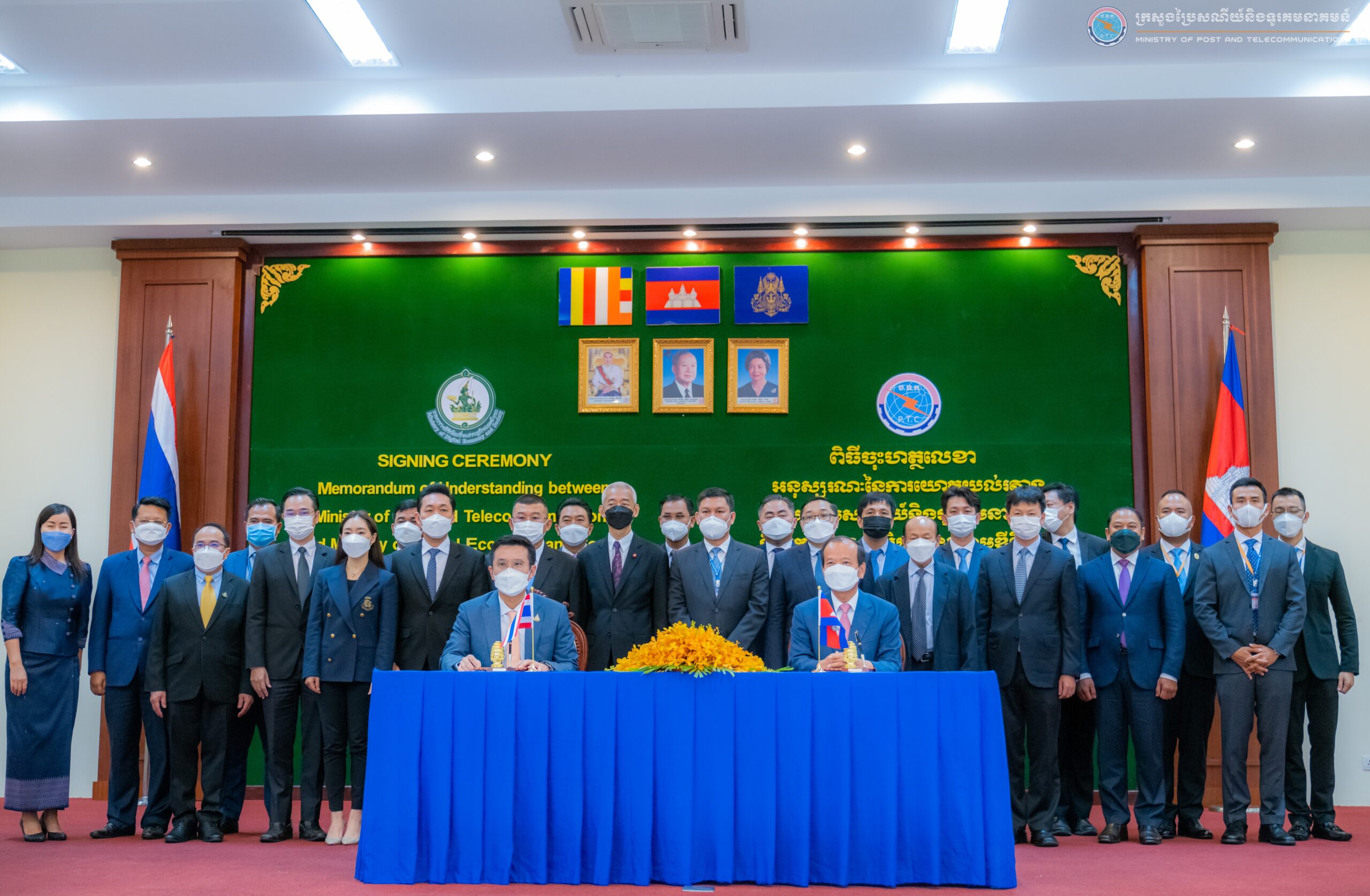 រាជធានីភ្នំពេញ៖ នាព្រឹកថ្ងៃទី១១ ខែកក្កដា ឆ្នាំ២០២២ ក្រសួងប្រៃសណីយ៍និងទូរគមនាគមន៍ នៃព្រះរាជាណាចក្រកម្ពុជា បានចុះអនុស្សរណៈនៃការយោគយល់ ជាមួយក្រសួងសេដ្ឋកិច្ច និងសង្គមឌីជីថលនៃព្រះរាជាណាចក្រថៃ ក្រោមអធិបតីភាពដ៏ខ្ពង់ខ្ពស់របស់ឯកឧត្តម ជា វ៉ាន់ដេត រដ្ឋមន្ត្រីក្រសួងប្រៃសណីយ៍និងទូរគមនាគមន៍ និងឯកឧត្តម Chaiwut Thanakamanusorn រដ្ឋមន្ត្រីក្រសួងសេដ្ឋកិច្ច និងសង្គមកិច្ចឌីជីថលនៃព្រះរាជាណាចក្រថៃ ដោយមានការចូលរួមពី ឯកឧត្តម Panyarak Poolthup ឯកអគ្គរាជទូតវិសាមញ្ញ និងពេញសមត្ថភាពនៃព្រះរាជាណាចក្រថៃប្រចាំកម្ពុជា តំណាងក្រសួងការបរទេសនិងសហប្រតិបត្តិការអន្តរជាតិ តំណាងអគ្គស្នងការដ្ឋាននគរបាលជាតិ និងមន្ត្រីរាជការនៃក្រសួងទាំងពីរផងដែរ។