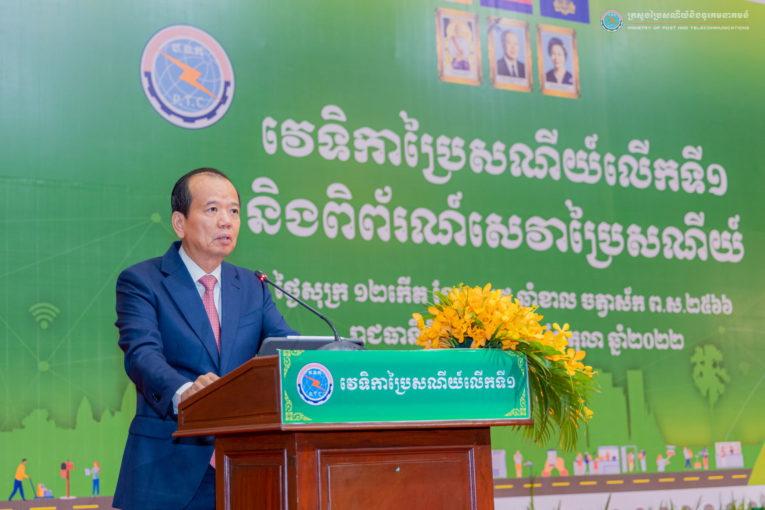 រាជធានីភ្នំពេញ៖នាព្រឹកថ្ងៃទី៧ ខែតុលា ឆ្នាំ២០២២ នៅសណ្ឋាគារសុខាភ្នំពេញ ឯកឧត្តម ជា វ៉ាន់ដេត រដ្ឋមន្ត្រីក្រសួងប្រៃសណីយ៍និងទូរគមនាគមន៍ បានអញ្ជើញជាអធិបតីក្នុងវេទិកាប្រៃសណីយ៍លើកទី១ និងពិព័រណ៍សេវាប្រៃសណីយ៍ និងពិធីអបអរសាទរទិវាប្រៃសណីយ៍ពិភពលោក។ ពិធីនេះមានការអញ្ជើញចូលរួមពីឯកឧត្តម Lin Hongliang អគ្គលេខាធិការសហភាពប្រៃសណីយ៍សកល (APPU) ឯកឧត្តម លោកជំទាវ លោកឧកញ៉ា លោក លោកស្រី តំណាងក្រសួង-ស្ថាប័នពាក់ព័ន្ធ មន្ទីរប្រៃសណីយ៍និងទូរគមនាគមន៍គ្រប់ខេត្ត អង្គការជាតិនិងអន្តរជាតិ និងក្រុមហ៊ុនប្រតិបត្តិករប្រៃសណីយ៍ឯកជនចំនួនប្រមាណ៦៣ ក្រុមហ៊ុន និងសាធារណជនយ៉ាងច្រេីន។