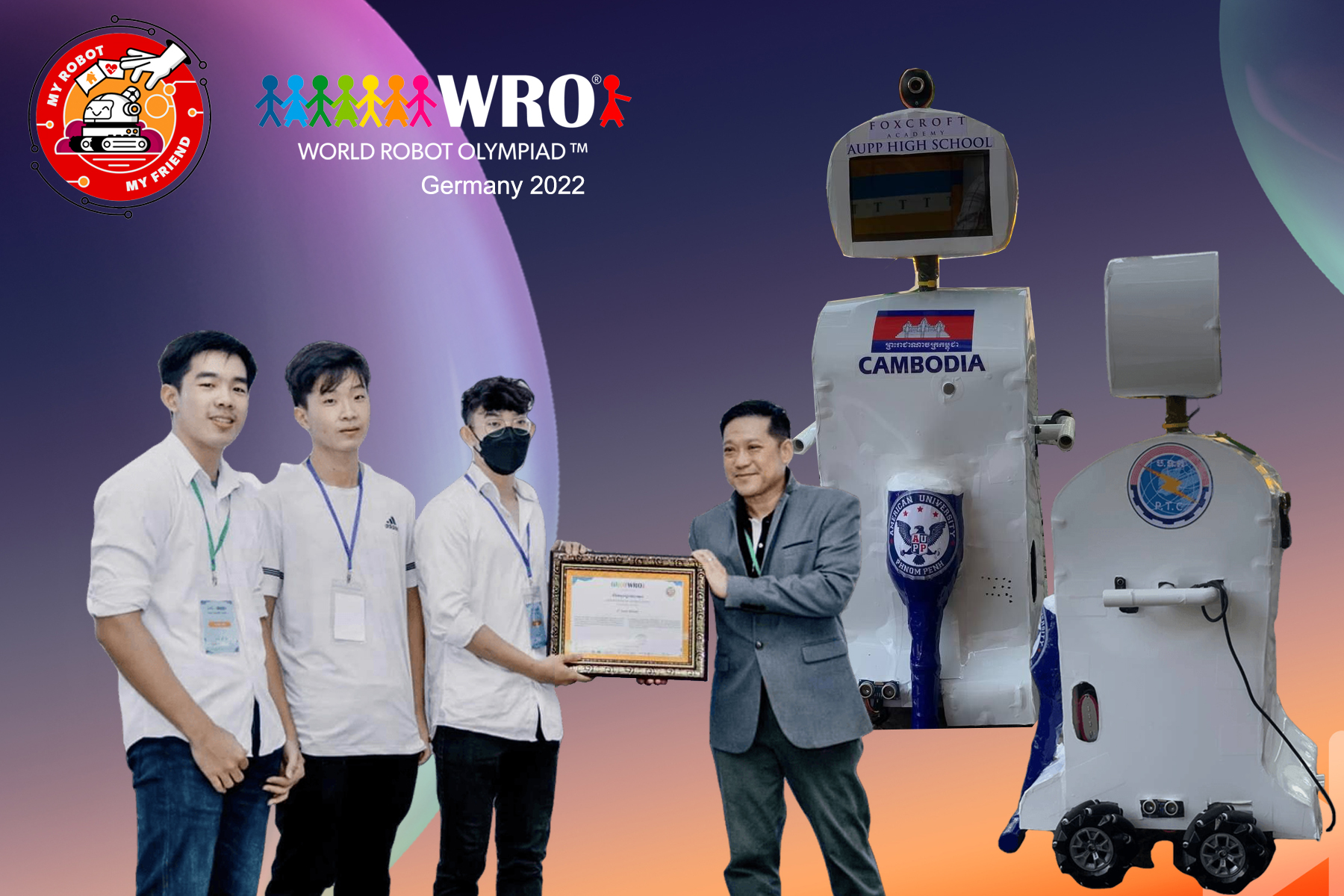 នៅថ្ងៃទី១១ ខែវិច្ឆិកា ឆ្នាំ២០២២ នេះ ក្រុមកម្ពុជាយើងដែលមានសិស្សឆ្នើមមកពីវិទ្យាល័យ AUPP ចំនួន ៣រូប នឹងចូលរួមកម្មវិធីប្រកួតមនុស្សយន្តអូឡាំព្យាដពិភពលោក (World Robot Olympiad) នៅប្រទេសអាល្លឺម៉ង់ បន្ទាប់ពីទទួលបានជោគជ័យក្នុងការប្រកួតថ្នាក់ជាតិនៅកម្ពុជា ដែលបានបញ្ចប់កាលពីខែតុលា ឆ្នាំ២០២២ កន្លងមក។