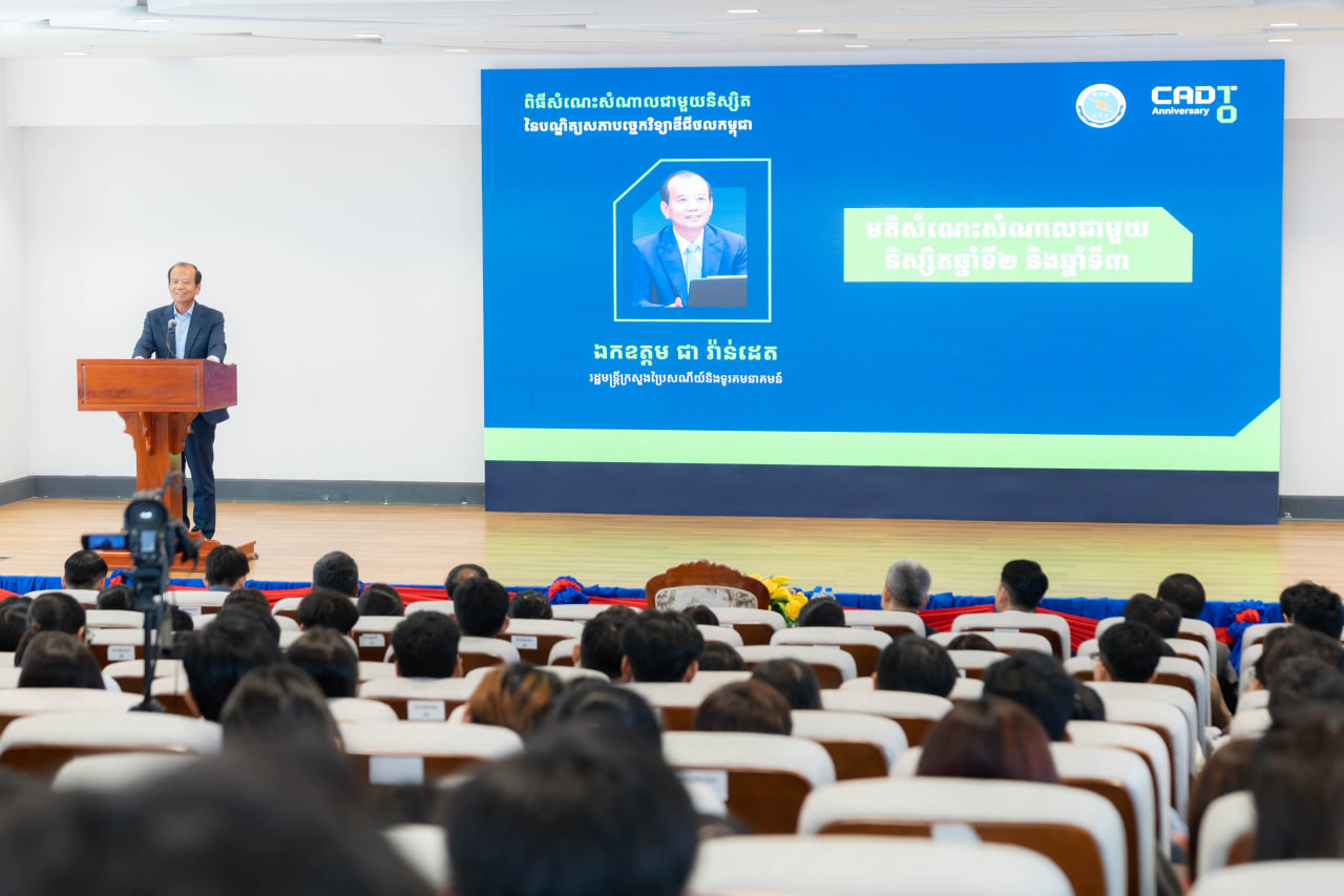 ឯកឧត្តមរដ្ឋមន្ត្រី ជា វ៉ាន់ដេត បានអញ្ជើញជាអធិបតីក្នុងពិធីសំណេះសំណាលជាមួយនិស្សិតដែលកំពុងសិក្សានៅបណ្ឌិត្យសភាបច្ចេកវិទ្យាឌីជីថលកម្ពុជា (CADT) សរុបប្រមាណ ៥២០នាក់ នៅ CADT ។