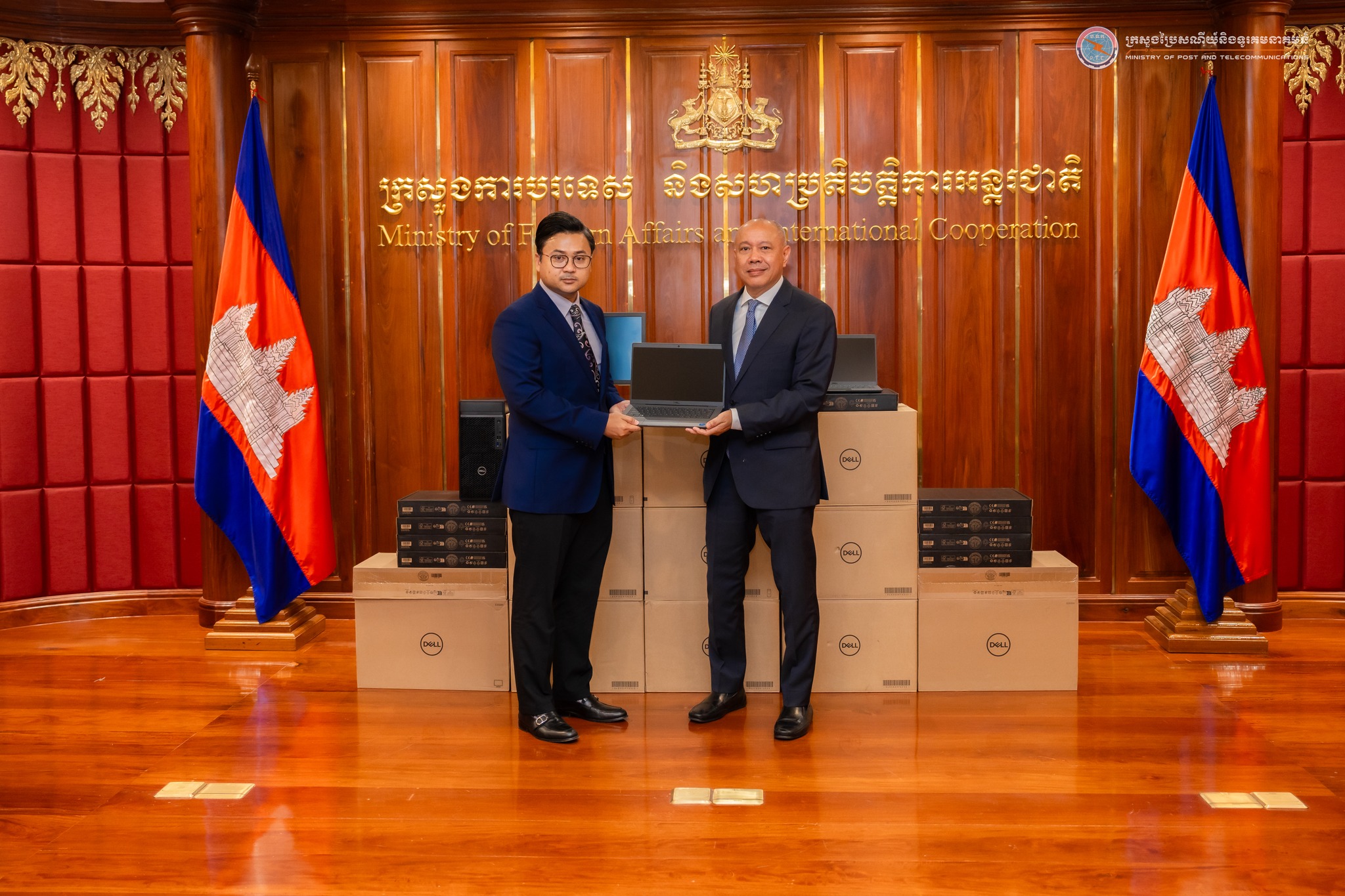រាជធានីភ្នំពេញព្រឹកថ្ងៃទី២៦ កុម្ភៈ ២០២៥ ក្រសួងប្រៃសណីយ៍និងទូរគមនាគមន៍ ប្រគល់កុំព្យូទ័រ ជូនក្រសួងការបរទេស និងសហប្រតិបត្តិការអន្តរជាតិ សម្រាប់បម្រើដល់ការងារបរិវត្តកម្មឌីជីថល និងការធ្វើទំនើបកម្មស្ថាប័ន ដោយមានការអញ្ជើញចូលរួមប្រគល់ និងទទួលពីសំណាក់ ឯកឧត្តម ប្រាក់ ផល្លា រដ្ឋលេខាធិការក្រសួងការបរទេស និងសហប្រតិបត្តិការអន្តរជាតិ និង ឯកឧត្តម ទូច យ៉ារ៉ាន់ឌី អនុរដ្ឋលេខាធិការក្រសួងប្រៃសណីយ៍និងទូរគមនាគមន៍ នៅទីស្តីការក្រសួងការបរទេស និងសហប្រតិបត្តិការអន្តរជាតិ ។