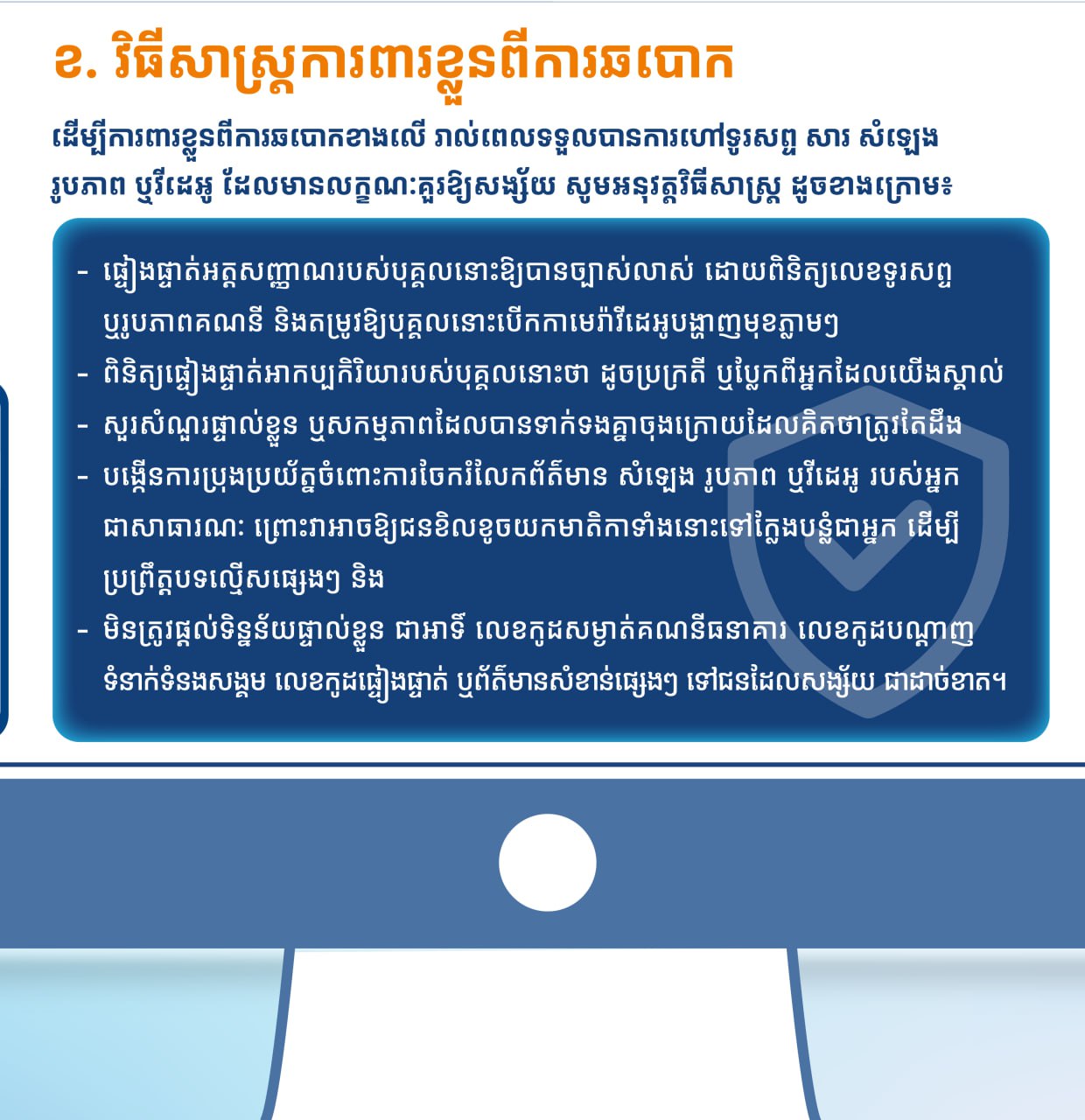 ខ. វិធីសាស្រ្តការពារខ្លួនពីការឆបោក