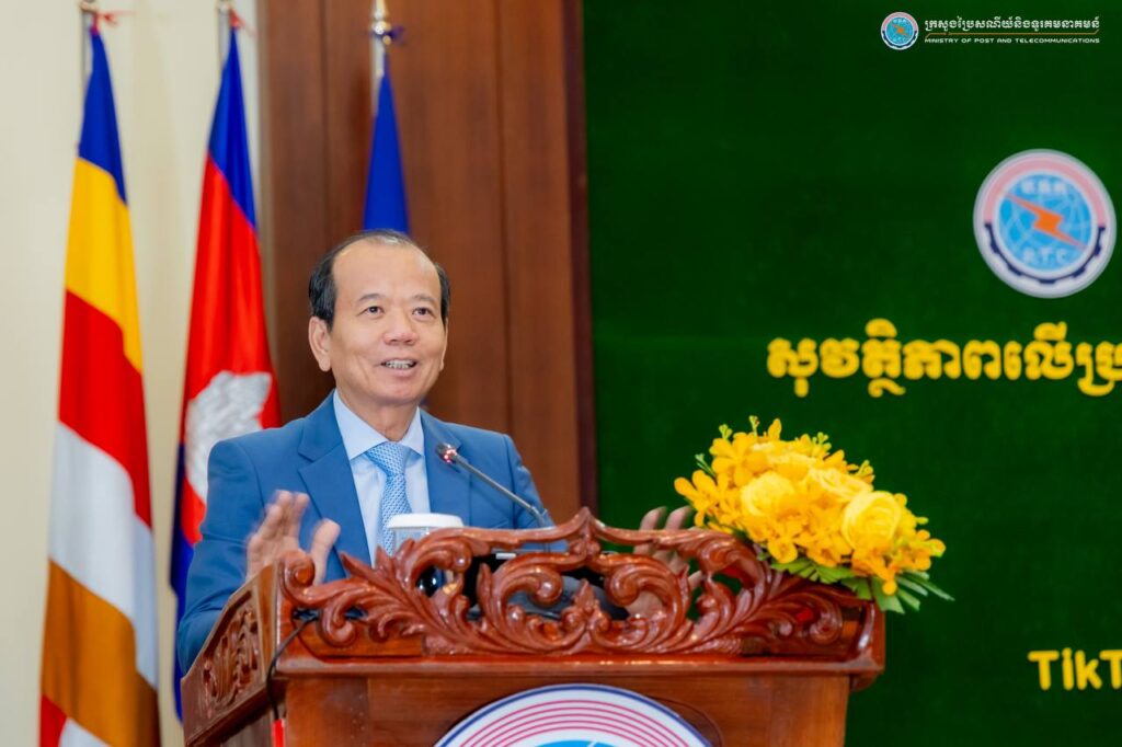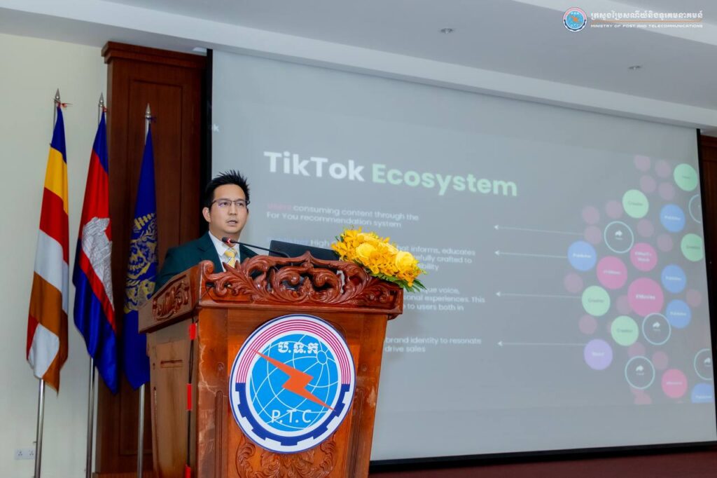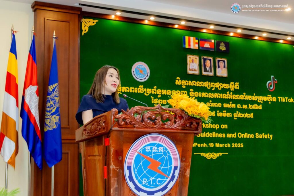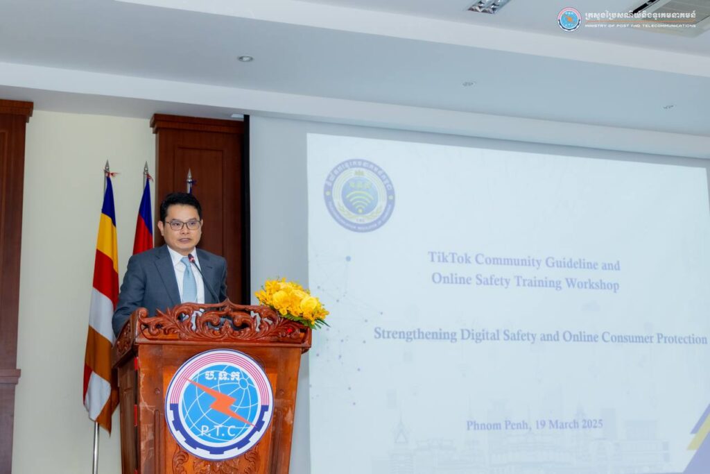 រាជធានីភ្នំពេញ៖ នៅព្រឹកថ្ងៃទី១៩ ខែមីនា ឆ្នាំ២០២៥ ក្រសួងប្រៃសណីយ៍និងទូរគមនាគមន៍ បានសហការជាមួយក្រុមហ៊ុន TikTok រៀបចំសិក្ខាសាលាផ្សព្វផ្សាយ ស្ដីពីសុវត្ថិភាពលើប្រព័ន្ធអនឡាញ និងគោលការណ៍ណែនាំរបស់ក្រុមហ៊ុន TikTok ក្រោមអធិបតីភាពឯកឧត្តម ជា វ៉ាន់ដេត រដ្ឋមន្ត្រីក្រសួងប្រៃសណីយ៍និងទូរគមនាគមន៍ និងមានការអញ្ជើញចូលរួមពីឯកឧត្តម លោកជំទាវ ជាថ្នាក់ដឹកនាំក្រសួង និងតំណាងក្រសួង ស្ថាប័ន លោកស្រី Chanida Klyphum ប្រធានផ្នែកគោលនយោបាយសាធារណៈរបស់ក្រុមហ៊ុន TikTok ប្រចាំអាស៊ីអាគ្នេយ៍ និងសហការី ព្រមទាំងអ្នកសារព័ត៌មាន អ្នកផលិតមាតិកា និងសាធារណជន សរុបប្រមាណ ២៥០នាក់។