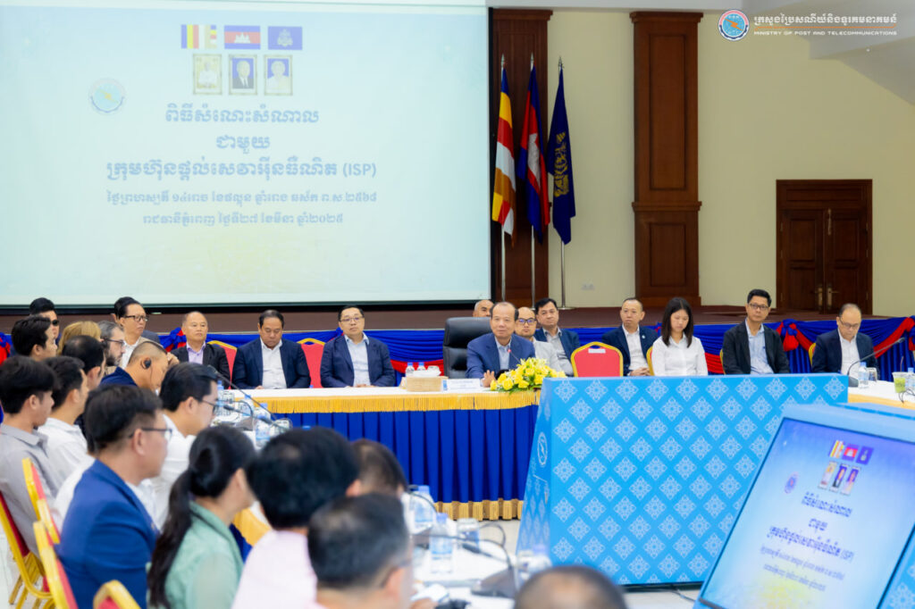 រាជធានីភ្នំពេញ៖ នៅព្រឹកថ្ងៃទី២៧ ខែមីនា ឆ្នាំ២០២៥ ឯកឧត្តម ជា វ៉ាន់ដេត រដ្ឋមន្រ្តីក្រសួងប្រៃសណីយ៍និងទូរគមនាគមន៍ បានអញ្ជើញជាអធិបតីក្នុងពិធីសំណេះសំណាលជាមួយក្រុមហ៊ុនផ្តល់សេវាអ៊ីនធឺណិតនៅកម្ពុជា (ISP) ដោយមានការអញ្ជើញចូលរួមពីថ្នាក់ដឹកនាំក្រសួង មន្រ្តីជំនាញ និងតំណាងក្រុមហ៊ុន សរុបប្រមាណ ១១០នាក់ នៅទីស្ដីការក្រសួងប្រៃសណីយ៍និងទូរគមនាគមន៍។