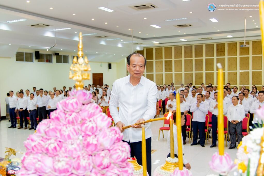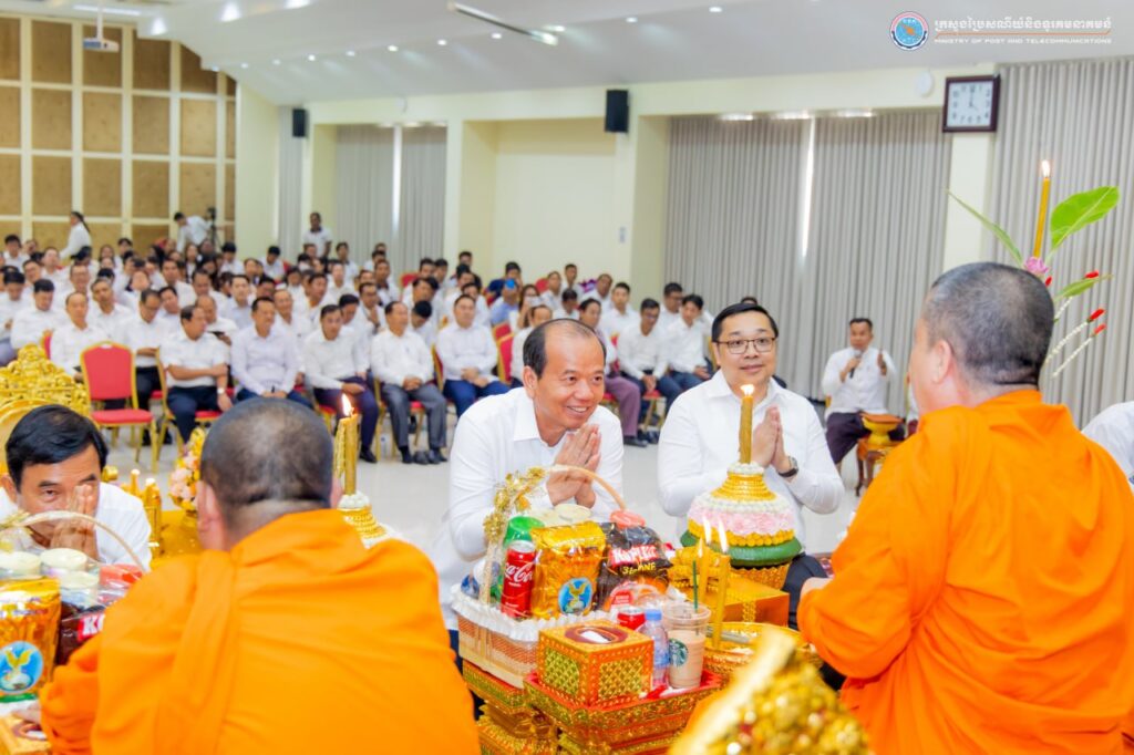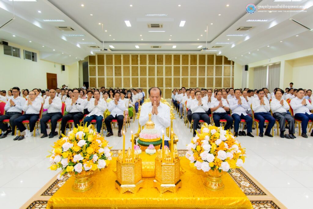 រាជធានីភ្នំពេញ៖ នៅរសៀលថ្ងៃទី៩ ខែមេសា ឆ្នាំ២០២៥ ឯកឧត្ដម ជា វ៉ាន់ដេត រដ្ឋមន្ត្រីក្រសួងប្រៃសណីយ៍និងទូរគមនាគមន៍ និងថ្នាក់ដឹកនាំ មន្ត្រីរាជការ ព្រមទាំងបុគ្គលិក ក្រោមឱវាទក្រសួង បានមូលមតិគ្នារៀបចំពិធីសូត្រមន្តប្រោះព្រំប្រសិទ្ធពរជ័យ សិរីសួស្ដី ដល់ថ្នាក់ដឹកនាំ មន្រ្តីរាជការ និងបុគ្គលិក ក្នុងឱកាសបុណ្យចូលឆ្នាំថ្មីប្រពៃណីជាតិ ឆ្នាំម្សាញ់ សប្តស័ក ព.ស.២៥៦៩ នៅទីស្តីការក្រសួងប្រៃសណីយ៍និងទូរគមនាគមន៍។