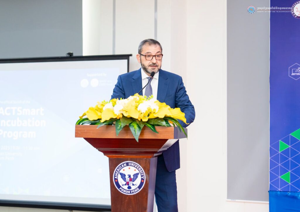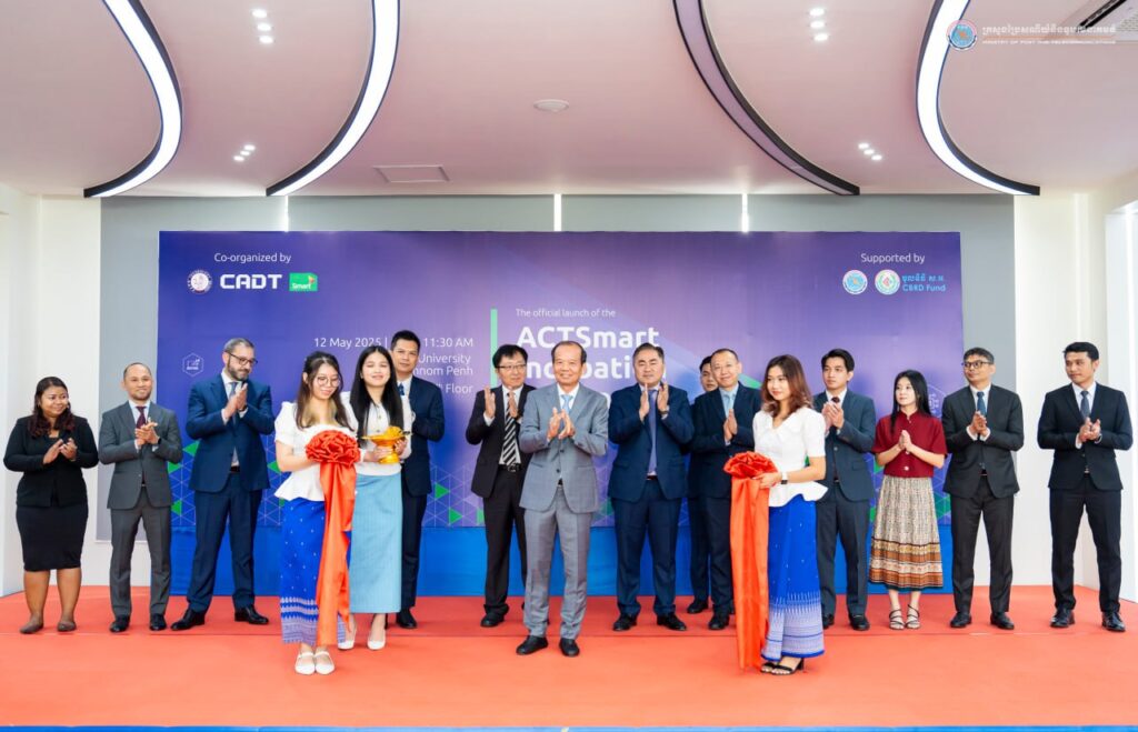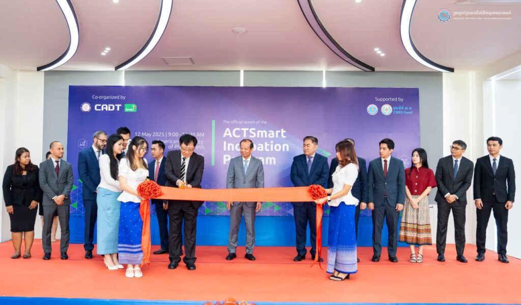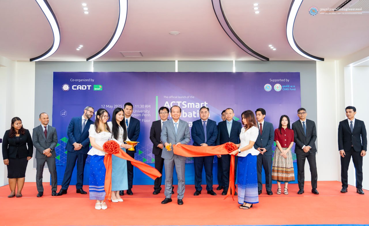 រាជធានីភ្នំពេញ៖ នៅព្រឹកថ្ងៃទី១២ ខែឧសភា ឆ្នាំ២០២៥ ឯកឧត្តម ជា វ៉ាន់ដេត រដ្ឋមន្ត្រីក្រសួងប្រៃសណីយ៍និងទូរគមនាគមន៍ បានអញ្ជើញជាអធិបតីក្នុងពិធីសម្ពោធកម្មវិធី “បណ្តុះបណ្តាលអាជីវកម្មបង្កើតថ្មី ACTSmart” ដោយមានការអញ្ជើញចូលរួមពីថ្នាក់ដឹកនាំក្រសួង នាយកមជ្ឈមណ្ឌលបច្ចេកវិទ្យា AUPP នាយកប្រតិបត្តិក្រុមហ៊ុន Smart Axiata ព្រមទាំងសាស្ត្រចារ្យ និស្សិត នៅមជ្ឈមណ្ឌលបច្ចេកវិទ្យា(ATC) នៃសាកលវិទ្យាល័យអាមេរិកាំងភ្នំពេញ។