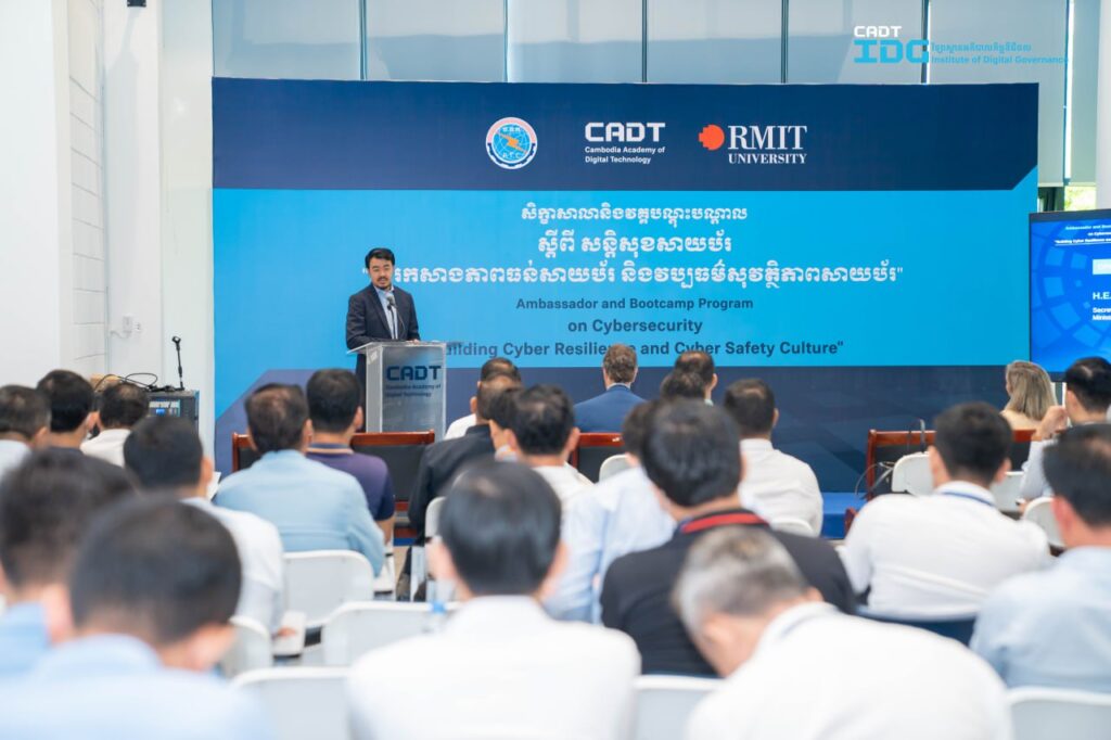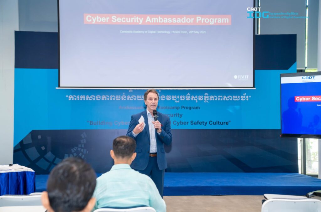 រាជធានីភ្នំពេញ៖ នៅថ្ងៃទី២៦ ខែឧសភា ឆ្នាំ២០២៥ ឯកឧត្តម កែវ សុទ្ធិ រដ្ឋលេខាធិការក្រសួងប្រៃសណីយ៍និងទូរគមនាគមន៍ បានអញ្ជើញជាអធិបតីក្នុងពិធីបើកសិក្ខាសាលានិងវគ្គបណ្តុះបណ្តាលស្តីពីសន្តិសុខសាយប័រ “ការកសាងភាពធន់សន្តិសុខសាយប័រ និងវប្បធម៌សុវត្ថិភាពសន្តិសុខសាយប័រ (Ambassador and Bootcamp Program on Cybersecurity “Building Cyber Resilience and Cyber Safety Culture)” នៅបណ្ឌិត្យសភាបច្ចេកវិទ្យាឌីជីថលកម្ពុជា ដោយមានការអញ្ជើញចូលរួមពីសំណាក់មន្ត្រីរាជការនៃក្រសួងប្រៃសណីយ៍និងទូរគមនាគមន៍ សាស្ត្រាចារ្យ និងនិស្សិតមកពីគ្រឹះស្ថានឧត្តមសិក្សាសរុបចំនួន ១០០នាក់។