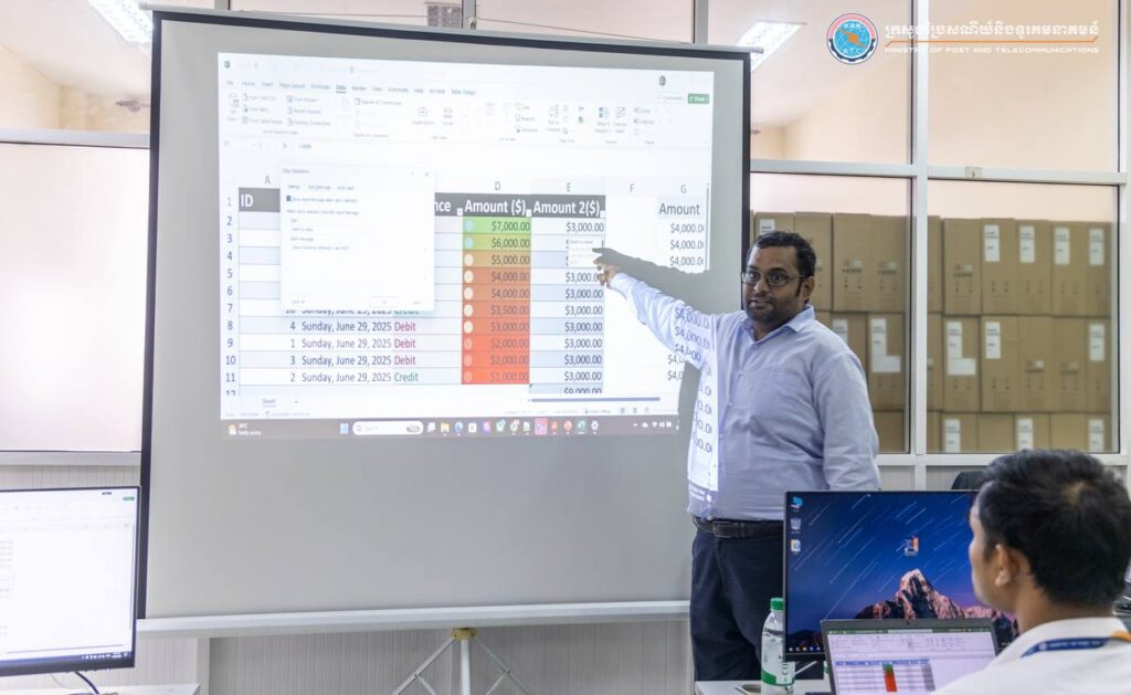 រាជធានីភ្នំពេញ៖ ក្រុមការងារបរិវត្តកម្មឌីជីថល និងនាយកដ្ឋានបុគ្គលិកនិងបណ្តុះបណ្តាល នៃក្រសួងប្រៃសណីយ៍និងទូរគមនាគមន៍ (ក.ប.ទ.) សហការជាមួយក្រុមហ៊ុន KBSL PTE. LTD. រៀបចំកម្មវិធីបណ្តុះបណ្តាលស្ដីពីមូលដ្ឋានគ្រឹះប្រើប្រាស់ថ្នាលផ្ទុកទិន្នន័យ និងការវិភាគទិន្នន័យ សម្រាប់ការងារ លើជំនាញដូចជា មូលដ្ឋានគ្រឹះនៃការប្រើប្រាស់ Excel និងការធ្វើរបាយការណ៍តាមរយៈ Pivot Chart & Table (Foundations of Data-Driven Work: Excel Essentials, Pivot Chart & Table and Smart Reporting) ដែលបានប្រព្រឹត្តទៅនៅថ្ងៃទី៣០ ខែមិថុនា ឆ្នាំ២០២៥ និង មូលដ្ឋានគ្រឹះប្រើប្រាស់ថ្នាលផ្ទុក និងការវិភាគទិន្នន័យ (Data Platforms and Analytics) នៅថ្ងៃទី១-៣ ខែកក្កដា ឆ្នាំ២០២៥ ជូនមន្ត្រីរាជការក្រោមឱវាទ ក.ប.ទ. សរុបប្រមាណ ៥៩នាក់ នៅទីស្តីការក្រសួងប្រៃសណីយ៍និងទូរគមនាគមន៍។