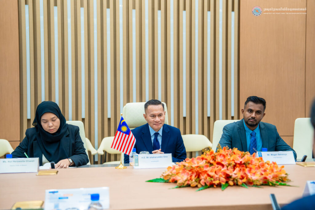 រាជធានីភ្នំពេញ៖ ព្រឹកថ្ងៃទី៨ ខែសីហា ឆ្នាំ២០២៥ ឯកឧត្តម ជា វ៉ាន់ដេត រដ្ឋមន្រ្តីក្រសួងប្រៃសណីយ៍និងទូរគមនាគមន៍ បានទទួលជំនួបពិភាក្សាការងារជាមួយ ឯកឧត្តម Shaharuddin Onn ឯកអគ្គរាជទូតម៉ាឡេស៊ីប្រចាំកម្ពុជា និងសហការី នៅទីស្ដីការក្រសួងប្រៃសណីយ៍និងទូរគមនាគមន៍។