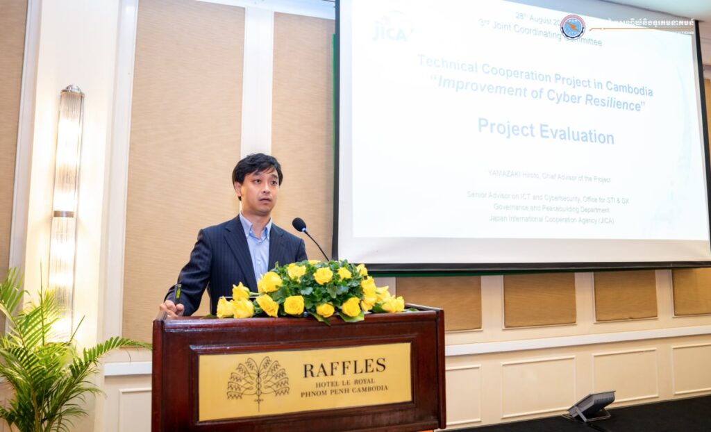 រាជធានីភ្នំពេញ៖ នៅថ្ងៃទី២៨ ខែសីហា ឆ្នាំ២០២៥ ឯកឧត្ដម ខូវ មករា រដ្ឋលេខាធិការក្រសួងប្រៃសណីយ៍និងទូរគមនាគមន៍ បានអញ្ជើញជាអធិបតីក្នុងកិច្ចប្រជុំគណៈកម្មាធិការសម្របសម្រួលគម្រោងលើកទី៣ (The 3rd Joint Coordinating Committee Meeting) នៃគម្រោងលើកកម្ពស់ភាពធន់នៃសន្តិសុខសាយប័រ ដែលមានការអញ្ជើញចូលរួមពីមន្ត្រីជំនាញមកពីបណ្ដាក្រសួង-ស្ថាប័នរដ្ឋ និងអង្គភាពពាក់ព័ន្ធ សរុបប្រមាណ ៤០នាក់។