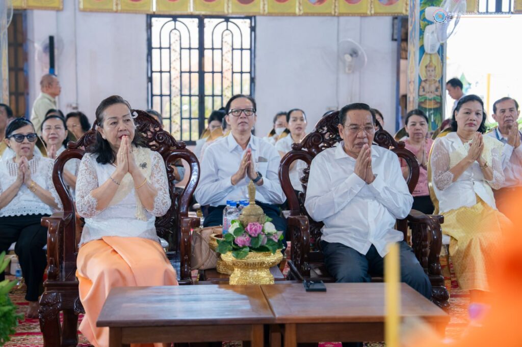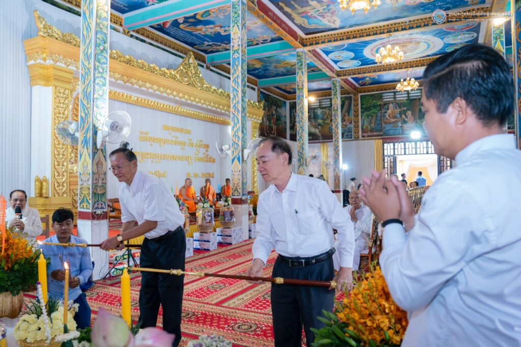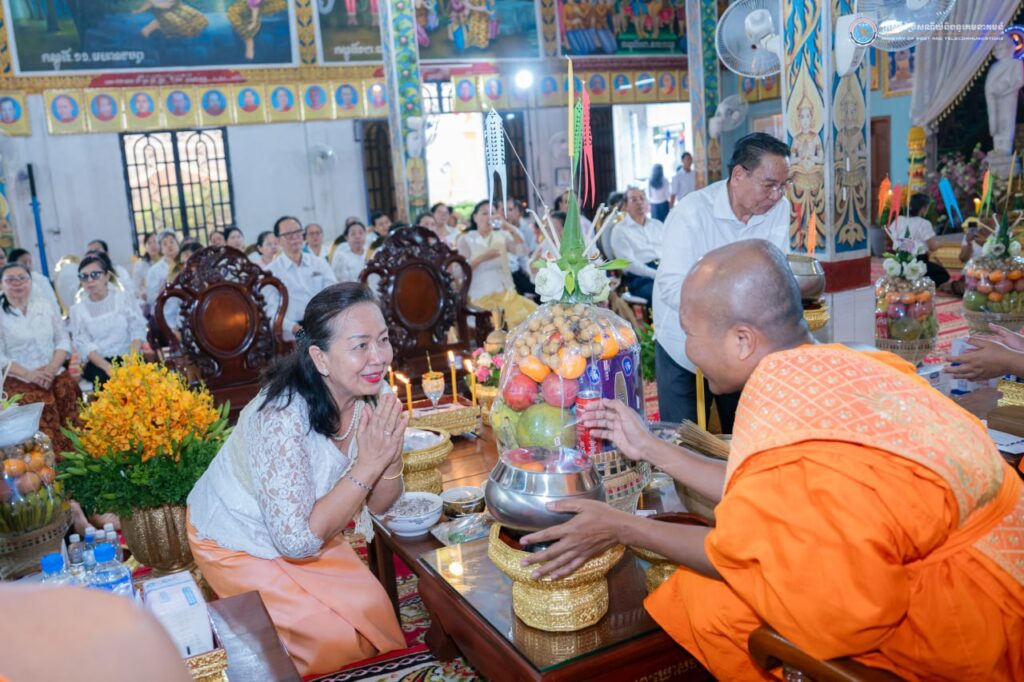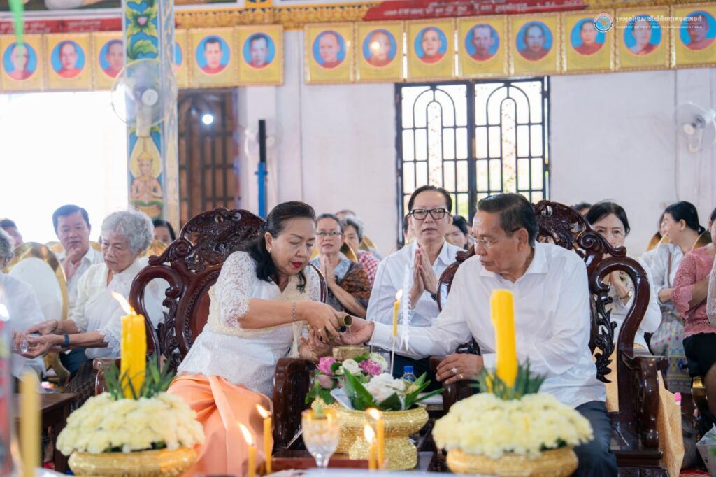 នៅក្នុងឱកាសនេះ ថ្នាក់ដឹកនាំនិងមន្ត្រីរាជការ បាននាំយកនូវទេយ្យវត្ថុផ្សេងៗ មានគ្រឿងឧបភោគបរិភោគ និងភេសជ្ជៈ ព្រមទាំងបច្ច័យកសាងវត្ត និងបច្ច័យមួយចំនួនប្រគេនព្រះសង្ឃបង្សុកូល និងឧទ្ទិសកុសលផលបុណ្យដល់បុព្វការីជន ដែលបានទទួលមរណៈកាល មាន មាតា បិតា ជីដូនជីតា យុទ្ធជន យុទ្ធនារី ដែលបានពលីជីវិតដើម្បីបុព្វហេតុជាតិមាតុភូមិ សូមបានទទួលនូវមគ្គផលកុសលផលបុណ្យនេះ និងបួងសួងដល់ដួងវិញ្ញាណក្ខន្ធអស់លោកទាំងអស់បានឈោងឆាប់កំណើតទៅកាន់ទីឋានបរមសុខ ហើយបែរក្រោយឱ្យពរជ័យដល់យើងខ្ញុំទាំងអស់ទទួលបាននូវពរជ័យទាំង៥ប្រការកុំបីឃ្លៀងឃ្លាតឡើយ។