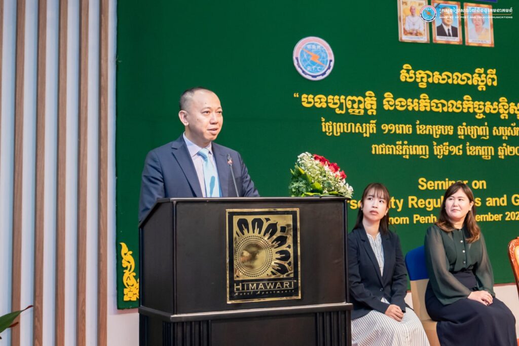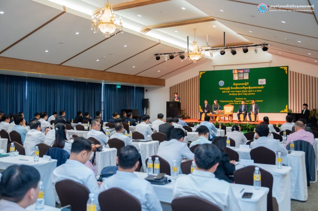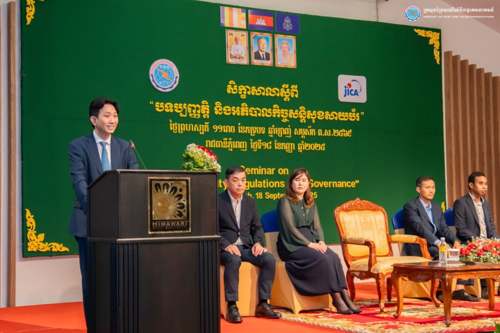 រាជធានីភ្នំពេញ៖ នៅថ្ងៃទី១៨ ខែកញ្ញា ឆ្នាំ២០២៥ ឯកឧត្តម ខូវ មករា រដ្ឋលេខាធិការក្រសួងប្រៃសណីយ៍និងទូរគមនាគមន៍ បានអញ្ជើញជាអធិបតីបិទសិក្ខាសាលា ស្តីពី « បទប្បញ្ញត្តិ និងអភិបាលកិច្ចសន្តិសុខសាយប័រ » នៅសណ្ឋាគារហ៊ីម៉ាវ៉ារី រាជធានីភ្នំពេញ ដែលមានការចូលរួមពីមន្ត្រីរាជការ និងបុគ្គលិកជំនាញមកពីបណ្តាក្រសួង-ស្ថាប័នរដ្ឋពាក់ព័ន្ធ ប្រតិបត្តិករហេដ្ឋារចនាសម្ព័ន្ធព័ត៌មានសំខាន់ៗ ប្រតិបត្តិករសេវាអ៊ីនធឺណិត និងវិស័យធនាគារ សរុបចំនួន ១០០រូប។