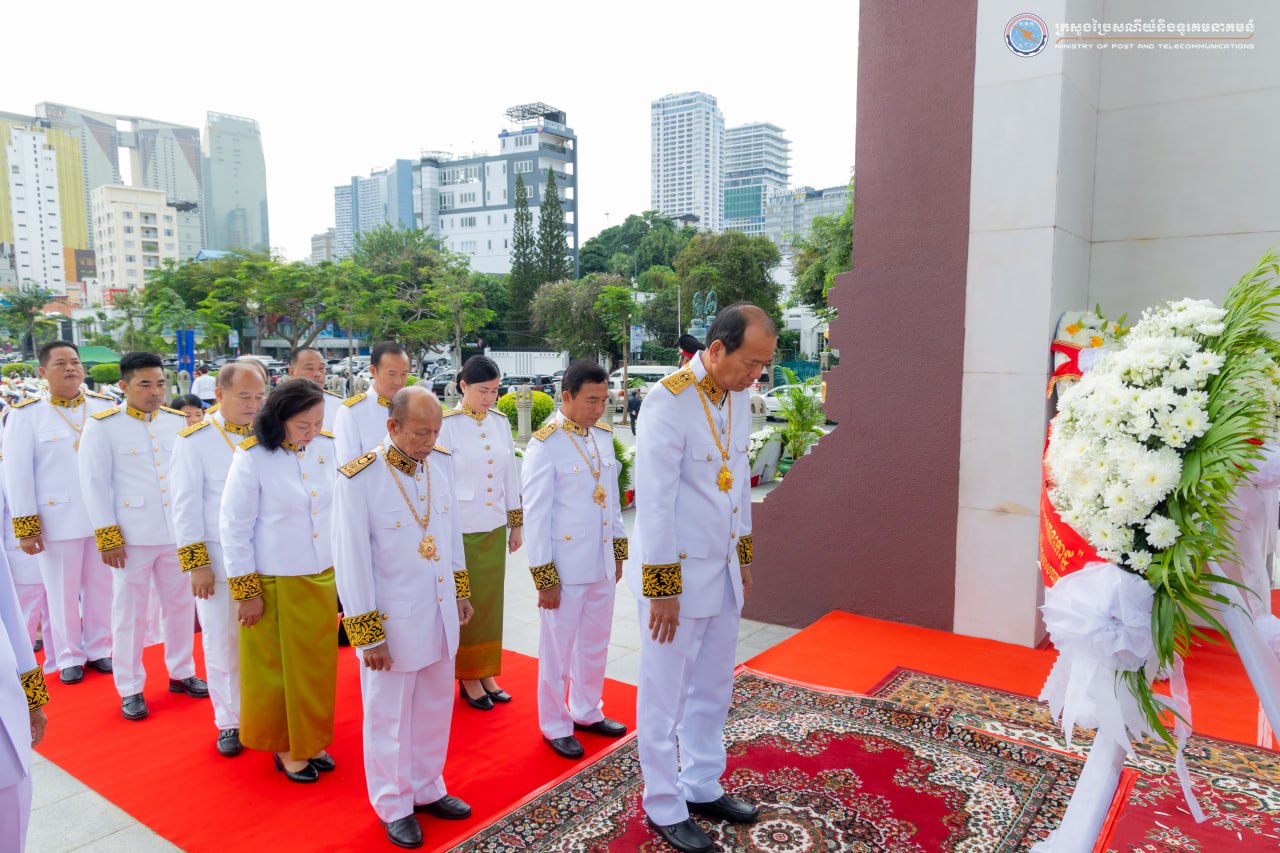 រាជធានីភ្នំពេញ៖ នៅព្រឹកថ្ងៃទី១៥ ខែតុលា ឆ្នាំ២០២៥ ឯកឧត្តម ជា វ៉ាន់ដេត រដ្ឋមន្ត្រីក្រសួងប្រៃសណីយ៍និងទូរគមនាគមន៍ បានដឹកនាំប្រតិភូក្រសួងអញ្ជើញចូលរួមថ្វាយកម្រងផ្កាគោរពព្រះវិញ្ញាណក្ខន្ធ ព្រះករុណាព្រះបាទសម្តេចព្រះ នរោត្តម សីហនុ ព្រះមហាវីរក្សត្រ ព្រះវររាជបិតាឯករាជ្យ បូរណភាពទឹកដី និងឯកភាពជាតិខ្មែរ “ព្រះបរមរតនកោដ្ឋ” គម្រប់ខួប ១៣ ឆ្នាំ នាព្រះមណ្ឌបសួនច្បារខាងកើតវិមានឯករាជ្យ រាជធានីភ្នំពេញ។