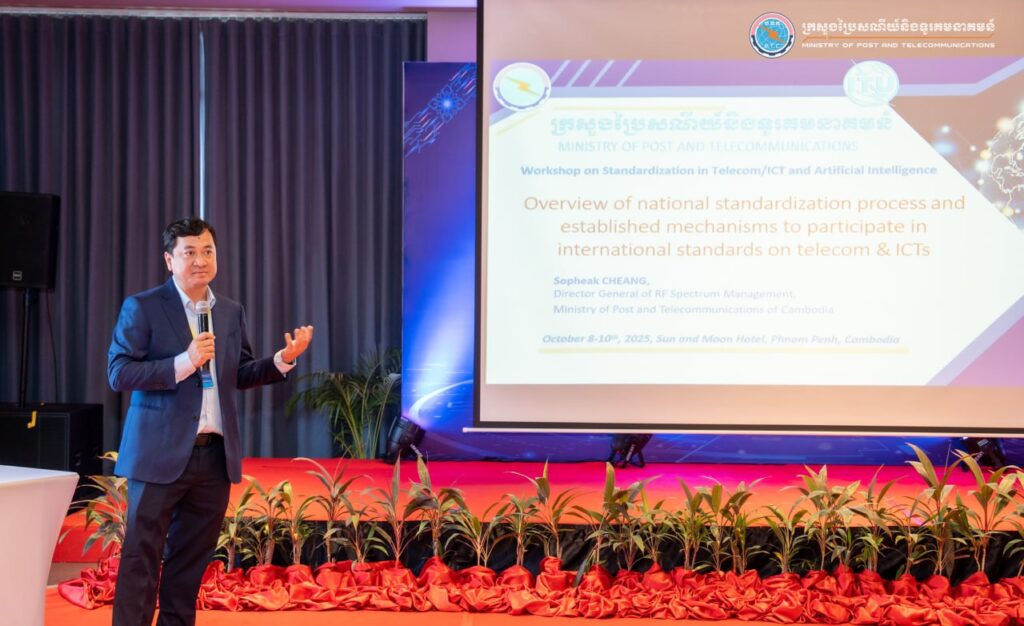 រាជធានីភ្នំពេញ – នាព្រឹកថ្ងៃទី០៨ ខែតុលា ឆ្នាំ២០២៥ ឯកឧត្តម សុខ ពុទ្ធិវុធ រដ្ឋលេខាធិការក្រសួងប្រៃសណីយ៍និងទូរគមនាគមន៍ (ក.ប.ទ.) បានអញ្ជើញជាអធិបតីក្នុងពិធីបើកសិក្ខាសាលាថ្នាក់ជាតិស្តីពីស្តង់ដារបញ្ញាសិប្បនិម្មិត (AI) សម្រាប់បង្កើនប្រសិទ្ធភាពវិស័យទូរគមនាគមន៍/បច្ចេកវិទ្យាគមនាគមន៍និងព័ត៌មាន (ICT) នៅសណ្ឋាគារសាន់អេនម៉ូន រីវើសាយ ដោយមានការចូលរួមពីឯកឧត្តម លោកជំទាវ លោក លោកស្រី ជាថ្នាក់ដឹកនាំ សមាជិក សមាជិកា ស្ថាប័ន ក្រសួង ក្រុមហ៊ុនឯកជន ក្រុមការងារសហភាពទូរគមនាគមន៍អន្តរជាតិ (ITU) ព្រមទាំងអ្នកជំនាញផ្នែកបញ្ញាសិប្បនិម្មិត និងបច្ចេកវិទ្យាគមនាគមន៍និងព័ត៌មាន។