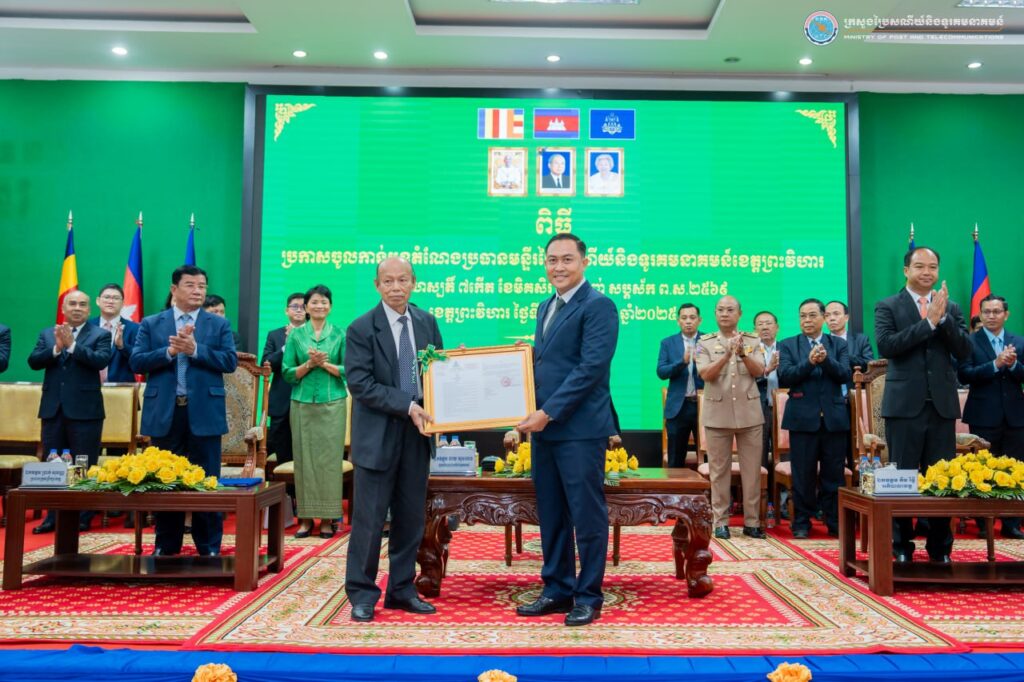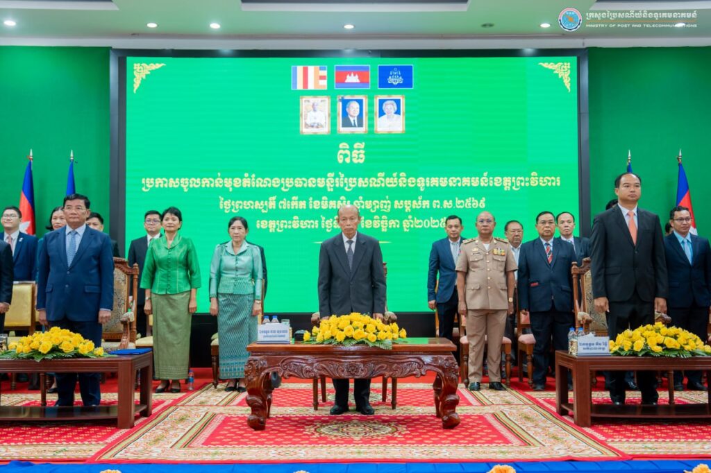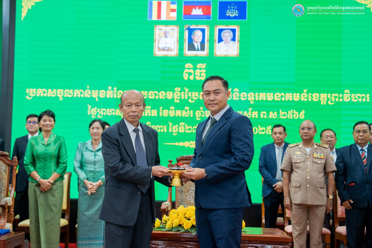 ខេត្តព្រះវិហារ៖ នៅព្រឹកថ្ងៃទី២៧ ខែវិច្ឆិកា ឆ្នាំ២០២៥ នៅសាលាខេត្តព្រះវិហារ ឯកឧត្តម ខាយ ឃុនហេង រដ្ឋលេខាធិការក្រសួងប្រៃសណីយ៍និងទូរគមនាគមន៍ បានអញ្ជើញជាអធិបតីក្នុងពិធីប្រកាសតែងតាំងលោក តាន់ ហ្វីលីស ជាប្រធានថ្មី នៃមន្ទីរប្រៃសណីយ៍និងទូរគមនាគមន៍ខេត្តព្រះវិហារ ជំនួសលោក លាវ ជួន ដែលត្រូវបានដាក់ឱ្យចូលនិវត្តន៍។ កម្មវិធីនេះមានវត្តមានចូលរួមពីសំណាក់ ឯកឧត្តម ប្រាក់ សុវណ្ណ ប្រធានក្រុមប្រឹក្សាខេត្ត ឯកឧត្តម គីម រិទ្ធី អភិបាលនៃគណៈអភិបាលខេត្ត និង ឯកឧត្តម លោកជំទាវ លោក លោកស្រី ជាថ្នាក់ដឹកនាំ មន្ត្រីរាជការ នៃក្រសួងប្រៃសណីយ៍និងទូរគមនាគមន៍ ព្រមទាំងមន្ទីរ-ស្ថាប័នជុំវិញខេត្ត សរុបប្រមាណ ១៨៦នាក់។