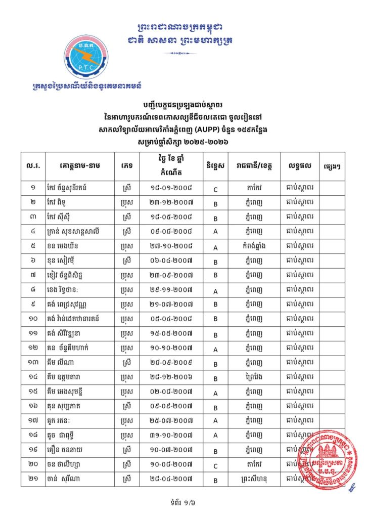 -ដោយឡែកសម្រាប់បេក្ខជនជាប់ស្ថាពរដែលត្រូវសិក្សានៅសាកលវិទ្យាល័យអាមេរិកាំងភ្នំពេញ (AUPP) ត្រូវទៅដាក់ពាក្យចូលរៀនផ្ទាល់នៅ AUPP។