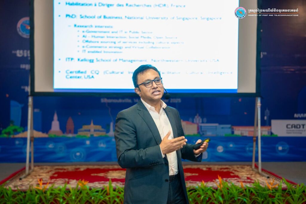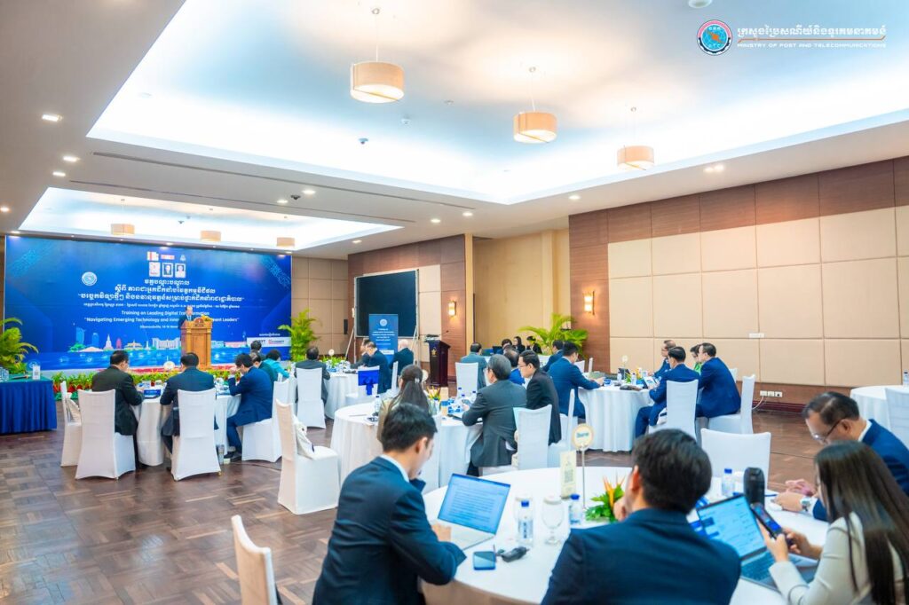សូមជម្រាបជូនថា វគ្គបណ្ដុះបណ្ដាលរយៈពេល ២ថ្ងៃនេះ មានគោលបំណងចែករំលែកចំណេះដឹងនិងបទពិសោធនៃការចាប់យកបច្ចេកវិទ្យាថ្មីៗសម្រាប់អ្នកដឹកនាំការងារបរិវត្តកម្មរដ្ឋាភិបាលឌីជីថលក្នុងវិស័យសាធារណៈ (Digital Government Transformation in Public Sector) ជាអាទិ៍ ការបញ្រ្ចាបនិងការចាប់យកបច្ចេកវិទ្យា, បញ្ញាសិប្បនិម្មិត (AI), អភិបាលកិច្ចទិន្នន័យ និងការចាប់យកបច្ចេកវិទ្យាថ្មីៗ ព្រមទាំងការអនុវត្តជាក់ស្ដែងនូវគម្រោងផ្លាស់ប្តូរឌីជីថល ដោយមានការចែករំលែកពីសំណាក់សាស្រ្តាចារ្យមកពីស្ថាប័នបណ្តុះបណ្តាលភាពជាអ្នកដឹកនាំដ៏ល្បី HEC Paris និងវាគ្មិនអន្តរជាតិ ផងដែរ។