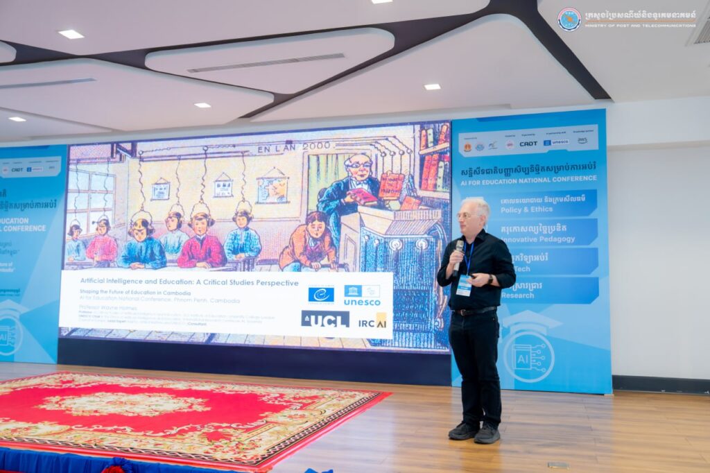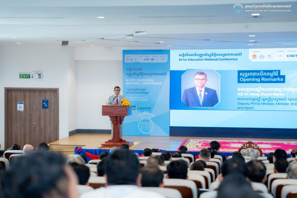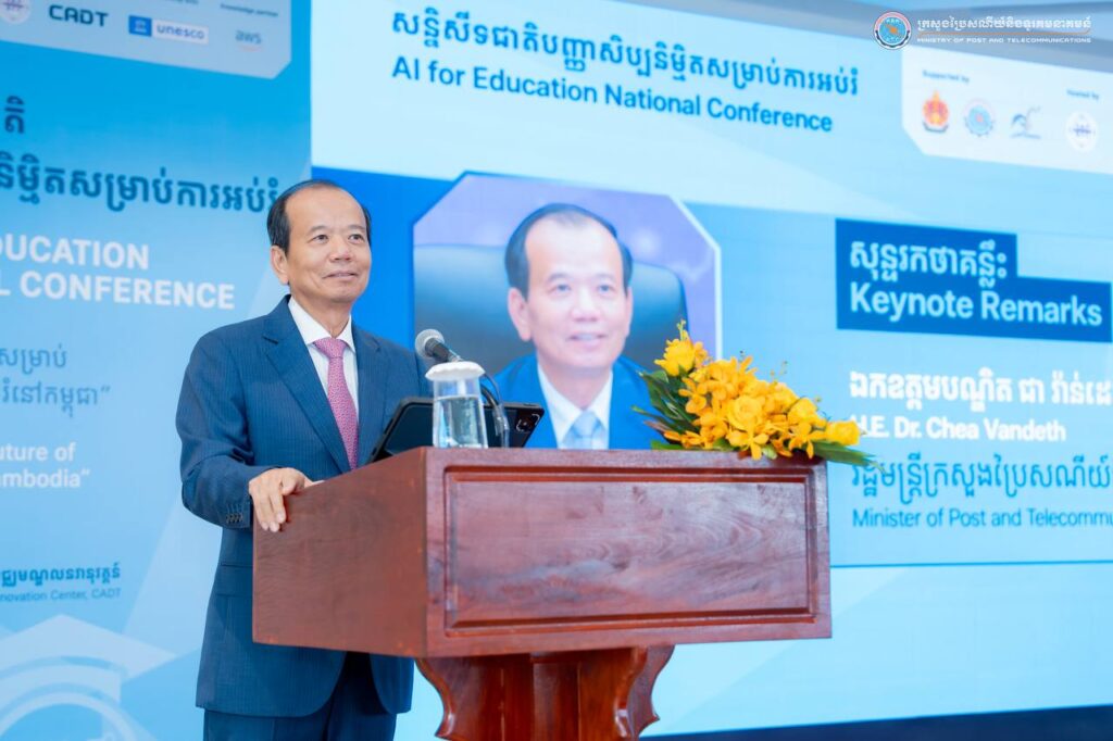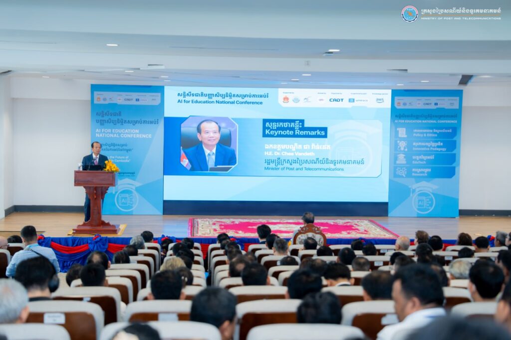រាជធានីភ្នំពេញ៖ ព្រឹកថ្ងៃទី២៤ ខែវិច្ឆិកា ឆ្នាំ២០២៥ ឯកឧត្តម ជា វ៉ាន់ដេត រដ្ឋមន្រ្តីក្រសួងប្រៃសណីយ៍និងទូរគមនាគមន៍ (ក.ប.ទ.) បានអញ្ជើញថ្លែងសុន្ទរកថាគន្លឹះក្នុងពិធីបើកសន្និសីទថ្នាក់ជាតិស្ដីពីបញ្ជាសិប្បនិម្មិតសម្រាប់ការអប់រំ ឆ្នាំ២០២៥ ក្រោមប្រធានបទ “បញ្ញាសិប្បនិម្មិតសម្រាប់អនាគតនៃការអប់រំនៅកម្ពុជា” ក្រោមអធិបតីភាពដ៏ខ្ពង់ខ្ពស់របស់ឯកឧត្តមបណ្ឌិតសភាចារ្យ ហង់ជួន ណារ៉ុន ឧបនាយករដ្ឋមន្រ្តី រដ្ឋមន្រ្តីក្រសួងអប់រំ យុវជន និងកីឡា ដោយមានការចូលរួមពីតំណាងអង្គទូត ដៃគូអភិវឌ្ឍ គ្រឹះស្ថានអប់រំ និងសិស្ស និស្សិត ប្រមាណជាង ៤០០រូប នៅបណ្ឌិត្យសភាបច្ចេកវិទ្យាឌីជីថលកម្ពុជា។