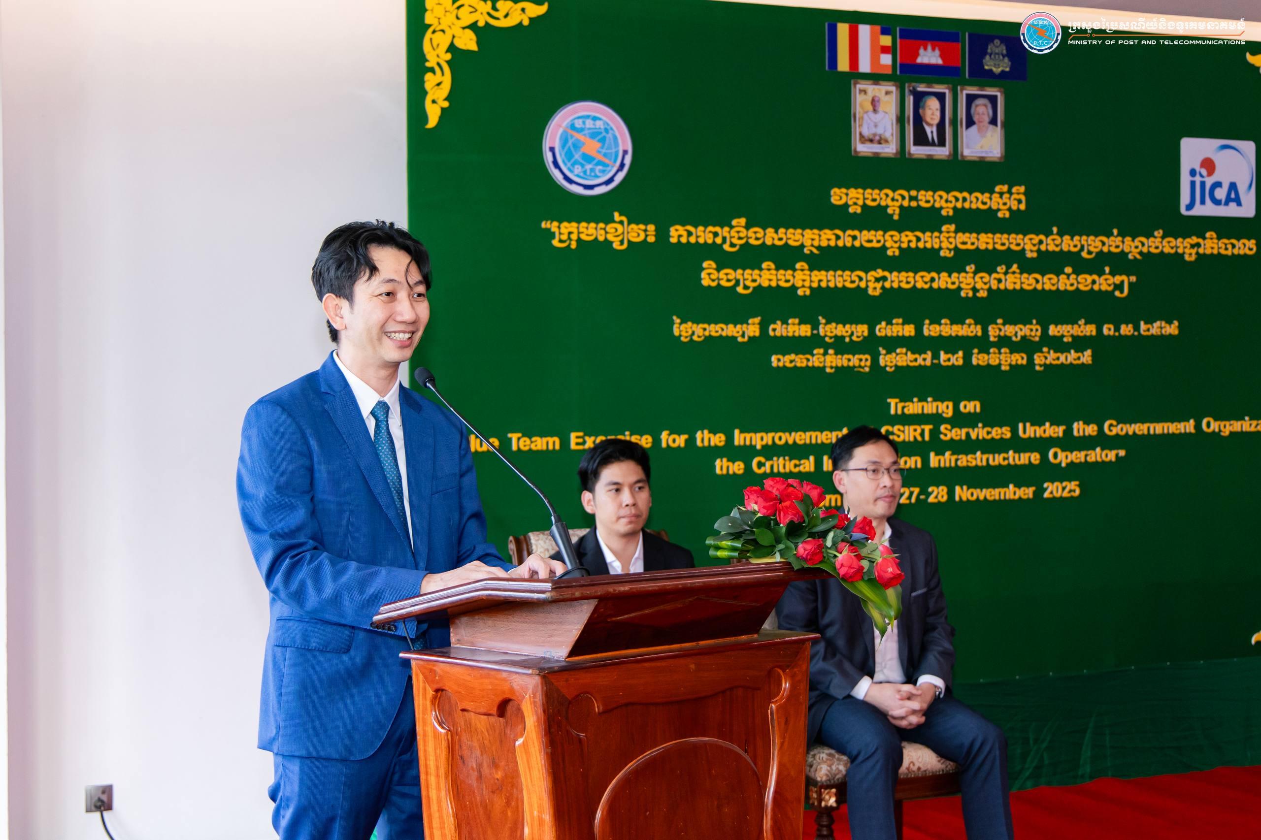 រាជធានីភ្នំពេញ៖ នៅថ្ងៃទី២៨ ខែវិច្ឆិកា ឆ្នាំ២០២៥ ឯកឧត្ដម ខូវ មករា រដ្ឋលេខាធិការក្រសួងប្រៃសណីយ៍និងទូរគមនាគមន៍ បានអញ្ជើញជាអធិបតីក្នុងពិធីបិទវគ្គបណ្ដុះបណ្ដាល ស្ដីពី « ក្រុមខៀវ៖ ការពង្រឹងសមត្ថភាពយន្តការឆ្លើយតបបន្ទាន់សម្រាប់ស្ថាប័នរដ្ឋាភិបាល និងប្រតិបត្តិករហេដ្ឋារចនាសម្ព័ន្ធព័ត៌មានសំខាន់ៗ » ដែលរៀបចំឡើងចាប់ពីថ្ងៃទី២៧-២៨ ខែវិច្ឆិកា ឆ្នាំ២០២៥ នៅសណ្ឋាគារសាន់ & ម៉ូន រីវើសាយ រាជធានីភ្នំពេញ និងមានការអញ្ជើញចូលរួមពីមន្ត្រីជំនាញមកពីបណ្ដាអង្គភាព ក្រសួង-ស្ថាប័នរដ្ឋ សរុបប្រមាណ ៤០រូប។