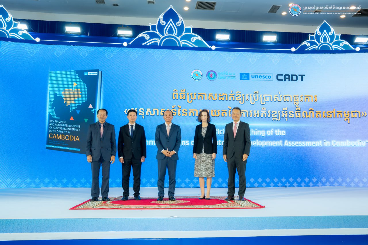 ក្រសួងប្រៃសណីយ៍និងទូរគមនាគមន៍ អង្គការយូណេស្កូ (UNESCO) និងបណ្ឌិត្យសភាបច្ចេកវិទ្យាឌីជីថល (CADT) បានប្រកាសអបអរសាទរជាផ្លូវការនូវការសម្ពោធដាក់ឱ្យប្រើប្រាស់ អនុសាសន៍វាយតម្លៃការអភិវឌ្ឍអ៊ីនធឺណិតនៅកម្ពុជា។ អនុសាសន៍នេះត្រូវបានរៀបចំឡើងដោយផ្អែកលើការសិក្សាដោយប្រើប្រាស់ សូចនាករសកលនៃអ៊ីនធឺណិត (ROAM-X) របស់អង្គការយូណេស្កូ។