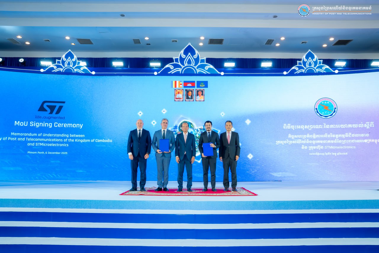 បន្ទាប់ពីពិធីបើក វេទិកាអភិបាលកិច្ចអ៊ីនធឺណិតកម្ពុជាឆ្នាំ២០២៥ ឯកឧត្តម ជា វ៉ាន់ដេត រដ្ឋមន្ត្រីក្រសួងប្រៃសណីយ៍និងទូរគមនាគមន៍ បានអញ្ជើញជាសក្ខីភាពក្នុងពិធីចុះអនុស្សរណៈនៃការយោគយល់ស្តីពីកិច្ចសហប្រតិបត្តិការលើបរិវត្តកម្មឌីជីថល រវាងក្រសួងប្រៃសណីយ៍និងទូរគមនាគមន៍ និងក្រុមហ៊ុន STMicroelectronics។