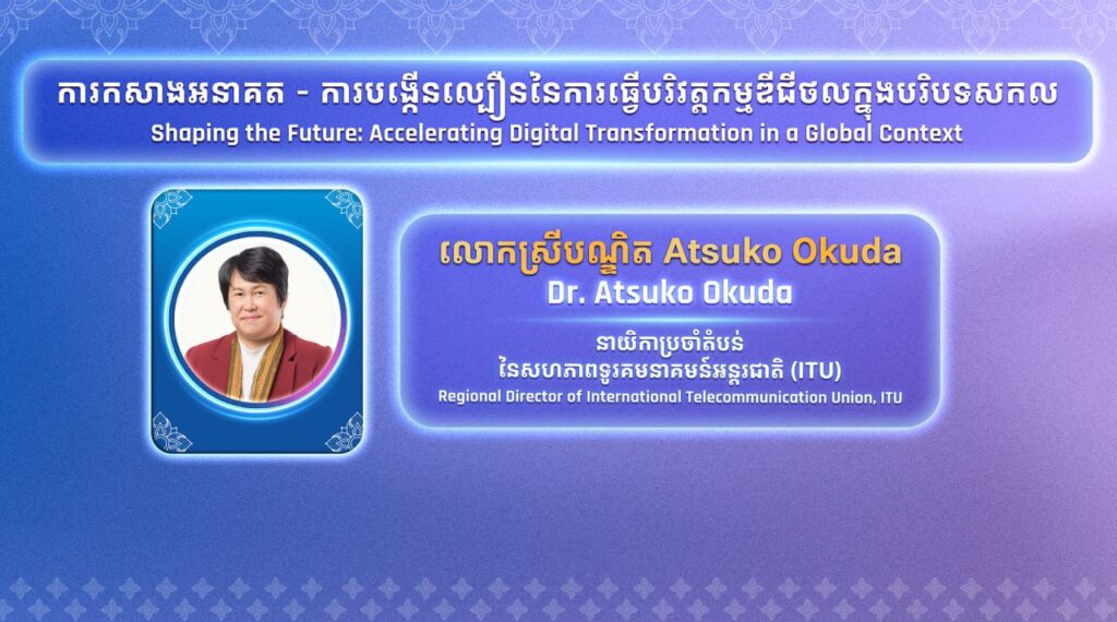– លោកស្រីបណ្ឌិត Atsuko Okuda នាយិកាប្រចាំតំបន់ នៃសហភាពទូរគមនាគមន៍អន្តរជាតិ (ITU)