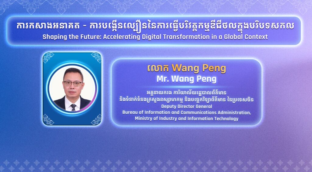 – លោក Wang Peng អគ្គនាយករង ការិយាល័យរដ្ឋបាលព័ត៌មាន និងទំនាក់ទំនងក្រសួងឧស្សាហកម្ម និងបច្ចេកវិទ្យាព័ត៌មាន នៃប្រទេសចិន