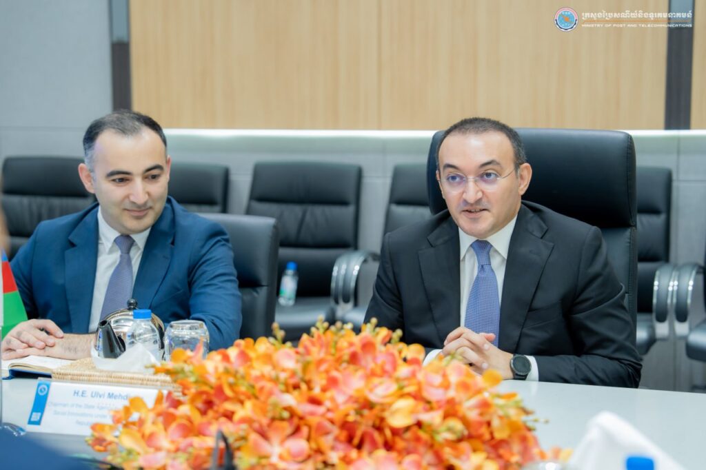 រាជធានីភ្នំពេញ៖ ព្រឹកថ្ងៃទី៤ ខែធ្នូ ឆ្នាំ២០២៥ ឯកឧត្តម ជា វ៉ាន់ដេត រដ្ឋមន្រ្តីក្រសួងប្រៃសណីយ៍និងទូរគមនាគមន៍ (ក.ប.ទ.) បានអញ្ជើញទទួលពិភាក្សាការងារជាមួយ ឯកឧត្តម អ៊ុលវី មេឌីយ៉េវ ( Ulvi Mehdiyev) ប្រធានទីភ្នាក់ងារជាតិសម្រាប់សេវាសាធារណៈ និងនវានុវត្តន៍សង្គម នៃសាធារណរដ្ឋអាហ្សាបៃហ្សង់ នៅទីស្តីការ ក.ប.ទ. ក្នុងអំឡុងពេលឯកឧត្តមអញ្ជើញចូលរួមកិច្ចប្រជុំលើកទី៩ នៃគណៈកម្មាធិការតម្រង់ទិសព័ត៌មានល្បឿនលឿនអាស៉ី-ប៉ាស៉ីហ្វិកនិងត្រួតពិនិត្យថ្នាក់តំបន់ នៃកិច្ចប្រជុំកំពូលពិភពលោកស្ដីពីសង្គមព័ត៌មាន ដែលបានសហការរៀបចំឡើងដោយ ក.ប.ទ. និង UN-ESCAP។
