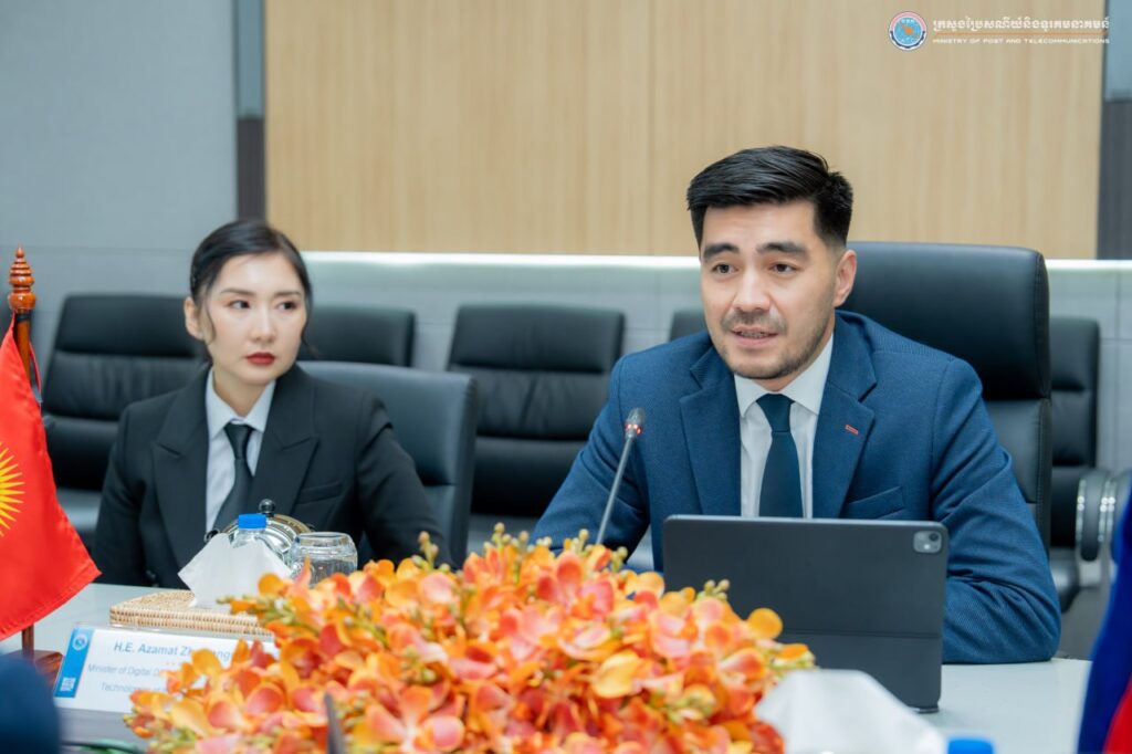 រាជធានីភ្នំពេញ៖ រសៀលថ្ងៃទី៤ ខែធ្នូ ឆ្នាំ២០២៥ ឯកឧត្តម ជា វ៉ាន់ដេត រដ្ឋមន្រ្តីក្រសួងប្រៃសណីយ៍និងទូរគមនាគមន៍ (ក.ប.ទ.) បានអញ្ជើញជួបពិភាក្សាការងារជាមួយ ឯកឧត្តម អាហ្សាម៉ាត់ ហ្សាម៉ាងហ្គូឡូវ (Azamat Zhamangulov) រដ្ឋមន្រ្តីក្រសួងអភិវឌ្ឍន៍ឌីជីថល និងនវានុវត្តន៍បច្ចេកវិទ្យា នៃសាធារណរដ្ឋ កៀរហ្ស៉ីស៉ីស្ថាន នៅទីស្តីការ ក.ប.ទ. ក្នុងអំឡុងពេលឯកឧត្តមអញ្ជើញចូលរួមកិច្ចប្រជុំលើកទី៩ នៃគណៈកម្មាធិការតម្រង់ទិសព័ត៌មានល្បឿនលឿនអាស៉ី-ប៉ាស៉ីហ្វិកនិងត្រួតពិនិត្យថ្នាក់តំបន់ នៃកិច្ចប្រជុំកំពូលពិភពលោកស្ដីពីសង្គមព័ត៌មាន ដែលបានសហការរៀបចំឡើងដោយ ក.ប.ទ. និង UN-ESCAP។
