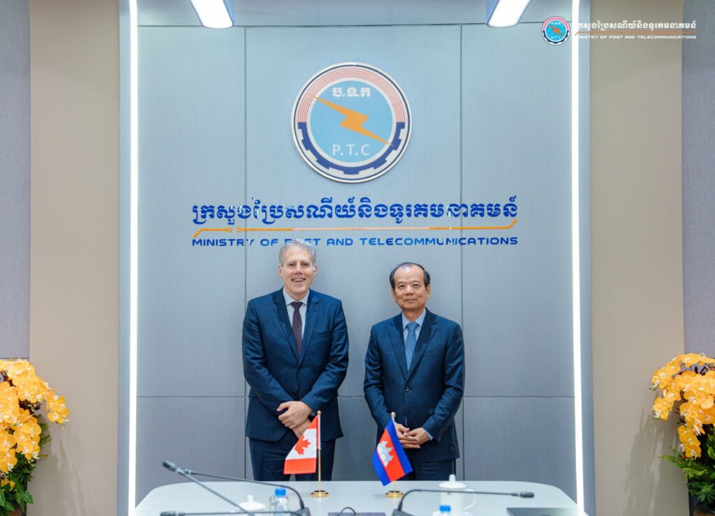 រាជធានីភ្នំពេញ៖ រសៀលថ្ងៃទី១៧ ខែធ្នូ ឆ្នាំ២០២៥ ឯកឧត្តម ជា វ៉ាន់ដេត រដ្ឋមន្រ្តីក្រសួងប្រៃសណីយ៍និងទូរគមនាគមន៍ (ក.ប.ទ.) បានទទួលជំនួបសម្ដែងការគួរសមនិងពិភាក្សាការងារជាមួយ ឯកឧត្តម Christian DesRoches ឯកអគ្គរដ្ឋទូតកាណាដាប្រចាំកម្ពុជា នៅទីស្ដីការ ក.ប.ទ.។