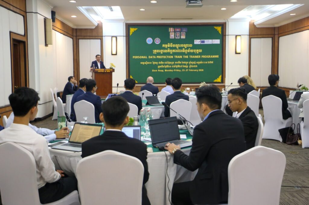 ខេត្តសៀមរាប៖ នៅថ្ងៃទី២៣ ខែកុម្ភៈ ឆ្នាំ២០២៦ ឯកឧត្តម គង់ ផល្លៈ រដ្ឋលេខាធិការក្រសួងប្រៃសណីយ៍និងទូរគមនាគមន៍ (ក.ប.ទ.) បានអញ្ជេីញជាអធិបតីបេីក “កម្មវិធីបណ្តុះបណ្តាលគ្រូបង្គោលស្តីពីកិច្ចការពារទិន្នន័យបុគ្គល” ដែលប្រព្រឹត្តទៅចាប់ពីថ្ងៃទី២៣ ដល់ថ្ងៃទី២៧ ខែកុម្ភៈ ឆ្នាំ២០២៦ នៅសណ្ឋាគារខេមរាអង្គរ និងស្ប៉ា ខេត្តសៀមរាប។ កម្មវិធីបណ្តុះបណ្តាលគ្រូបង្គោលនេះសហការរៀបចំដោយ ក.ប.ទ. និងសាកលវិទ្យាល័យជាតិគ្រប់គ្រង ក្រោមការគាំទ្រពីគម្រោង EU-German GATE ដែលមានអ្នកចូលរួមមកពី នាយកដ្ឋាននីតិកម្មនៃ ក.ប.ទ. និយ័តករទូរគមនាគមន៍កម្ពុជា សាស្រ្តាចារ្យ បុគ្គលិក និងនិស្សិតនៃសាកលវិទ្យាល័យជាតិគ្រប់គ្រង ព្រមទាំងអ្នកតំណាង គម្រោង EU-German GATE សរុបចំនួន៣០ នាក់។