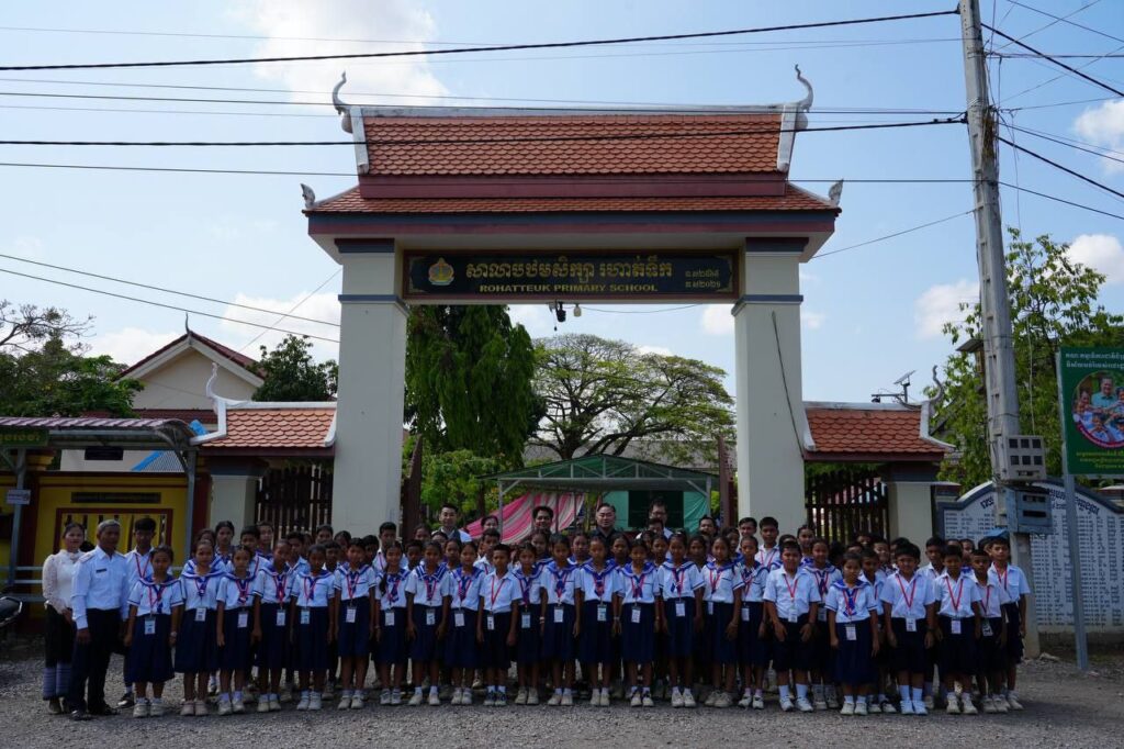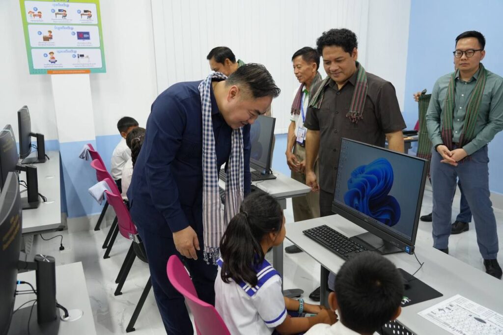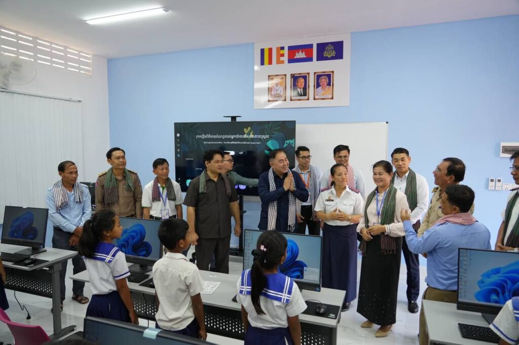 ខេត្តបន្ទាយមានជ័យ៖ ព្រឹកថ្ងៃទី៦ ខែមីនា ឆ្នាំ២០២៦ ឯកឧត្តម សូ វិសុទ្ធី រដ្ឋលេខាធិការក្រសួងប្រៃសណីយ៍និងទូរគមនាគមន៍ (ក.ប.ទ.) និង ឯកឧត្តម ហៃ ហ៊ុនឡេង នាយកខុទ្ទកាល័យ ឯកឧត្តមទេសរដ្ឋមន្ត្រី ពេជ សោភ័ន និងជាសមាជិកលេខាធិការដ្ឋានគណៈកម្មាធិការជាតិជំរុញការអនុវត្តវិធានការគន្លឹះក្នុងវិស័យអប់រំ (គ.វ.អ.) បានអញ្ជើញជាអធិបតីក្នុងពិធីសម្ពោធដាក់ឱ្យដំណើរការជាផ្លូវការកម្មវិធីសិក្សាថ្នាក់មូលដ្ឋានគ្រឹះឌីជីថល នៅតាមសាលាបឋមសិក្សាគោលដៅ ១៨ទីតាំងបន្ថែមក្នុងជំហ៊ានទី២ នៅសាលាបឋមសិក្សារហាត់ទឹក ខេត្តបន្ទាយមានជ័យ ដើម្បីចូលរួមចំណែកអនុវត្តវិធានការគន្លឹះក្នុងវិស័យអប់រំរបស់រាជរដ្ឋាភិបាល បណ្ដុះគ្រាប់ពូជមូលធនមនុស្សឌីជីថលកម្ពុជា ទទួលចំណេះដឹងនិងជំនាញឌីជីថលមូលដ្ឋានពីបឋមវ័យ ចាប់យកបច្ចេកវិទ្យាឌីជីថល នឹងក្លាយជាកម្លាំងចលករជំរុញឧត្តមភាពប្រកួតប្រជែងកម្ពុជានៅក្នុងសេដ្ឋកិច្ចឌីជីថល។