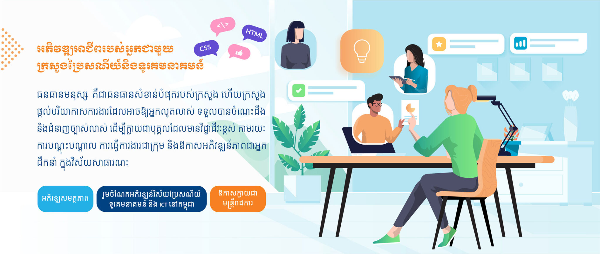 - មានស្មារតីចង់បន្តអភិវឌ្ឍសមត្ថភាព ចំណេះដឹង និងជំនាញ។