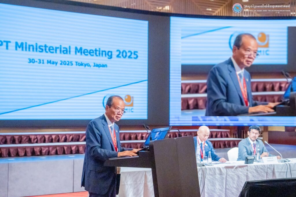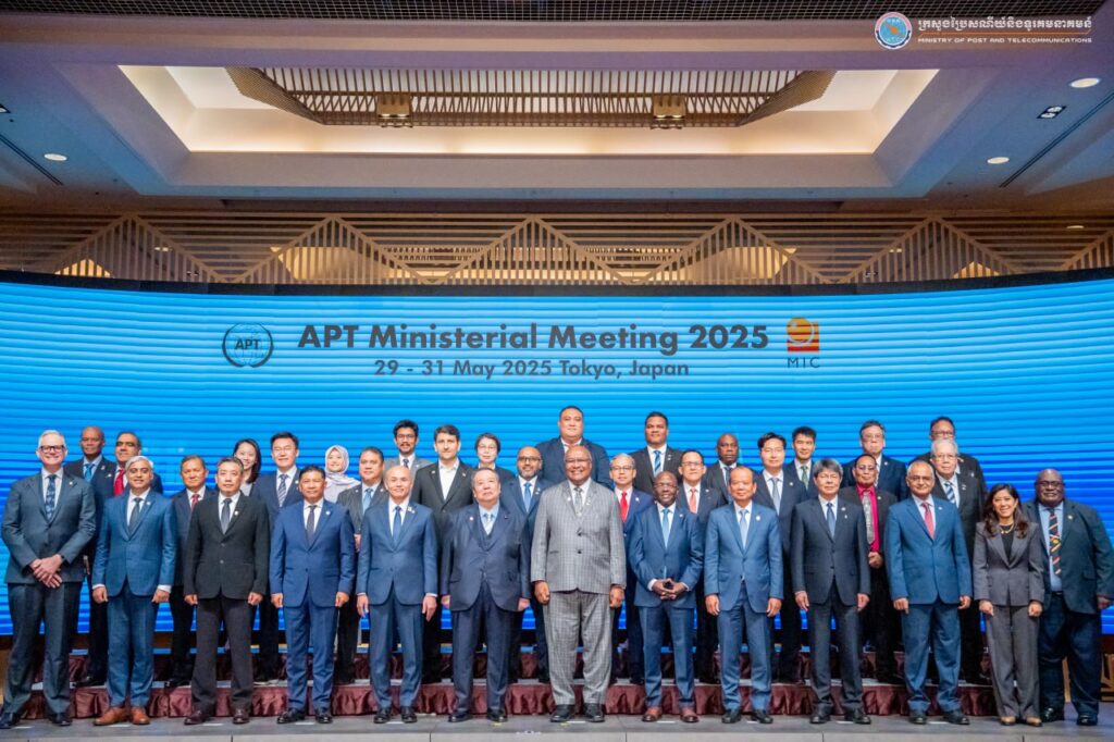 Tokyo— On May 30–31, 2025, His Excellency Chea Vandeth, Minister of Post and Telecommunications (MPTC), led a delegation to participate in the Asia-Pacific Telecommunity Ministerial Meeting (APTMM) in Tokyo, Japan. The meeting brought together 216 participants, including ministers and representatives from the ministries in charge of telecommunications and information and communication technology (ICT) from 33 Asia-Pacific countries, the International Telecommunication Union (ITU), international organizations, development partners, and the private sector.