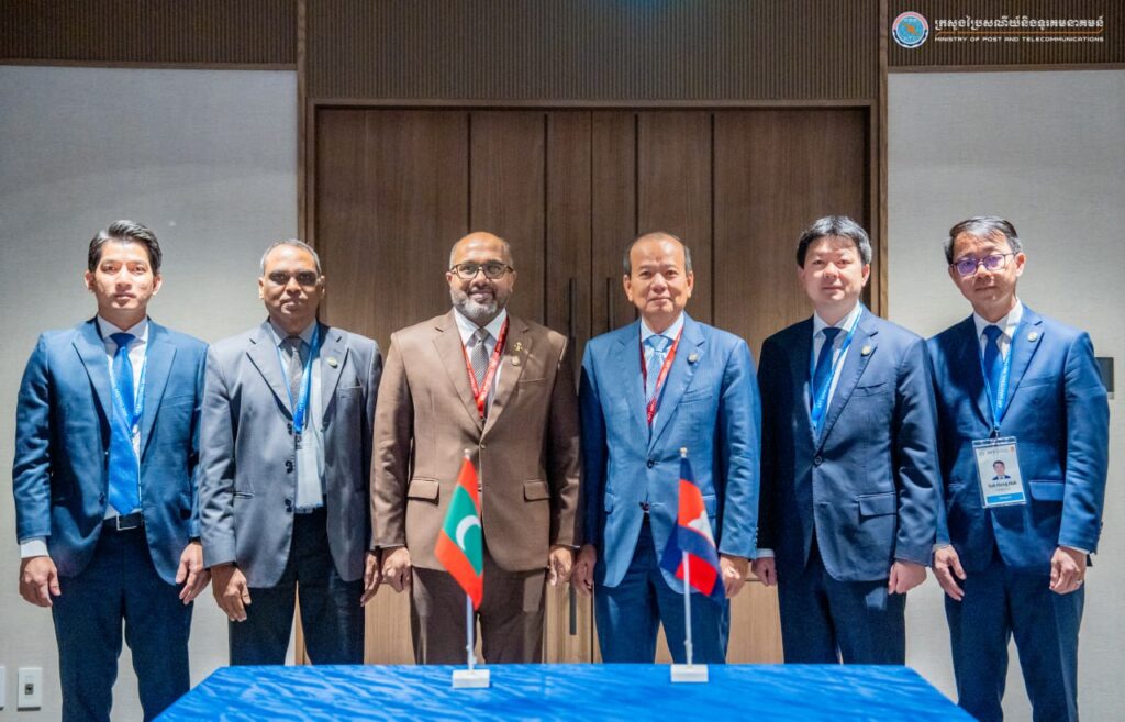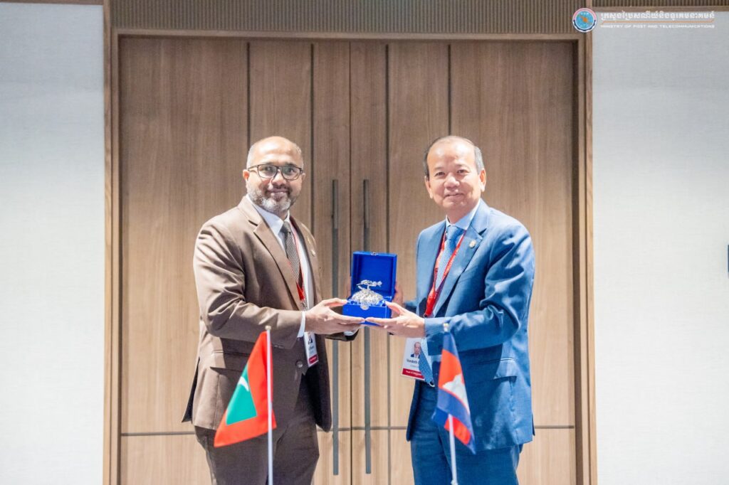 Furthermore, Minister Chea Vandeth conducted bilateral meetings with the Minister of Internal Affairs and Communications of Japan. The meeting focused on (1) cooperation in the establishment of the National Data Center, (2) exploring the development of Open and Secure Communication Networks (Open RAN), and (3) encouraging Japanese digital technology companies to invest in Cambodia, particularly in Cambodia’s Digital Park. On top of that, H.E. the Minister also met with the Minister of Homeland Security and Technology of the Maldives, where discussions centered around (1) the progress of digital transformation, (2) experience sharing, and (3) introducing and promoting the use of VERIFY.GOV.KH in the Maldives.